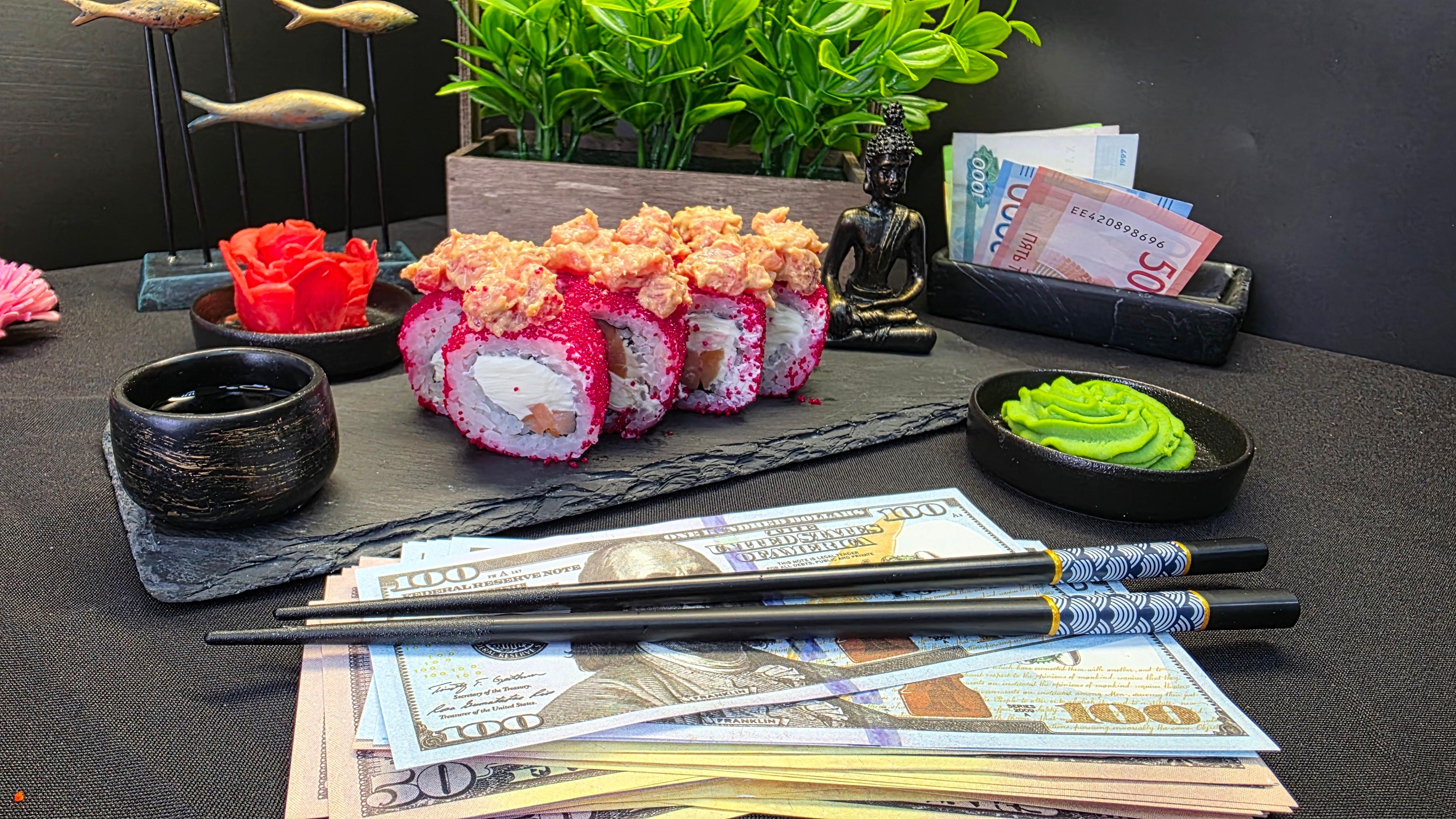 Это не просто ролл, это мощный взрывной микс премиум-ингредиентов! Два вида элитной рыбы (копчёный лосось и тунец), острая перчинка соуса, икорная россыпь и нежный сыр. Это выбор миллионера, который любит яркие, дерзкие вкусы и не боится экспериментировать. ✅ Нори (лист водорослей) ✅ Рис для суши ✅ Сливочный сыр (Филадельфия) ✅ Лосось холодного копчения ✅ Тобико красное ✅ Тунец ✅ Соус спайс 280 гр.
