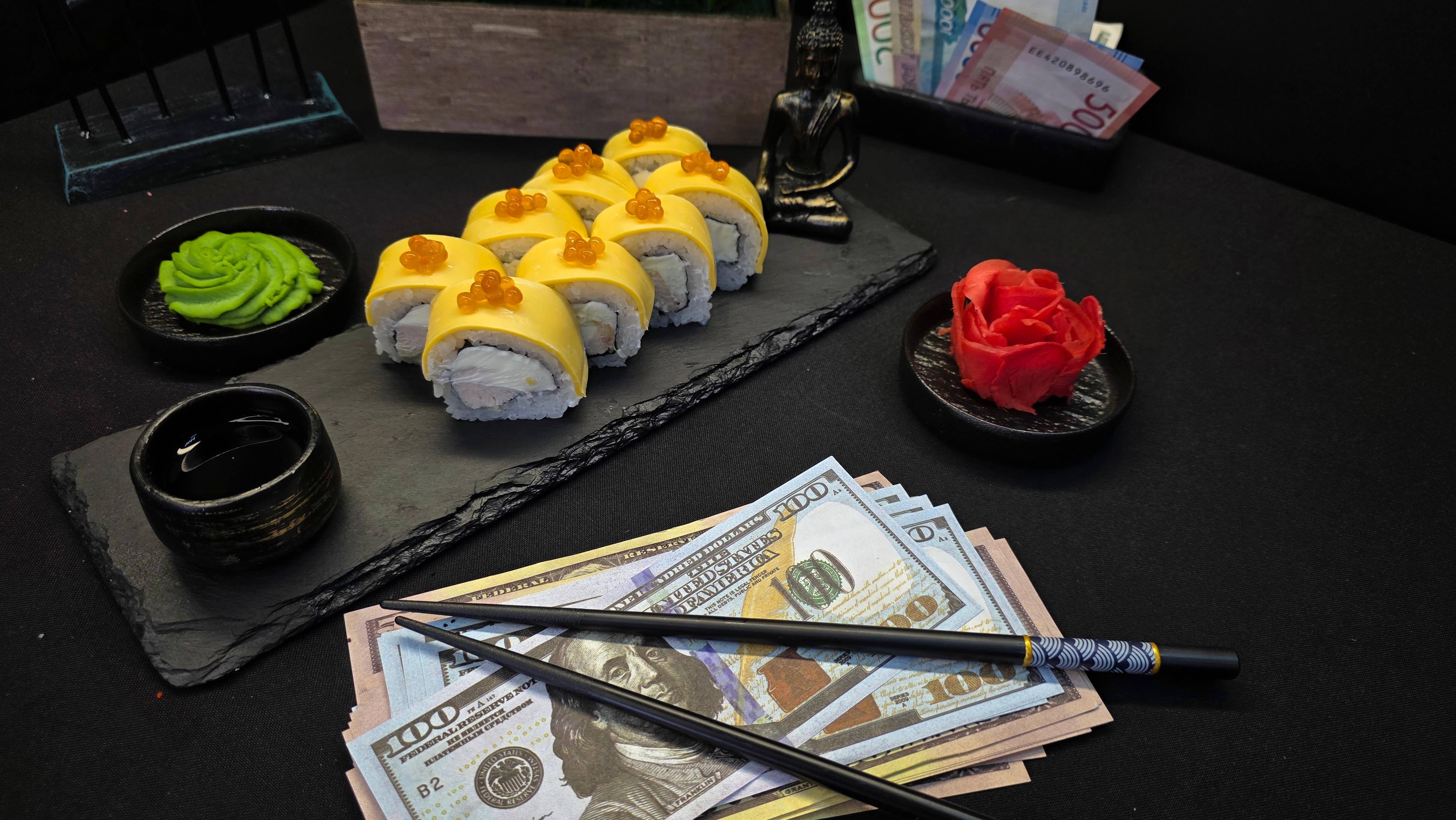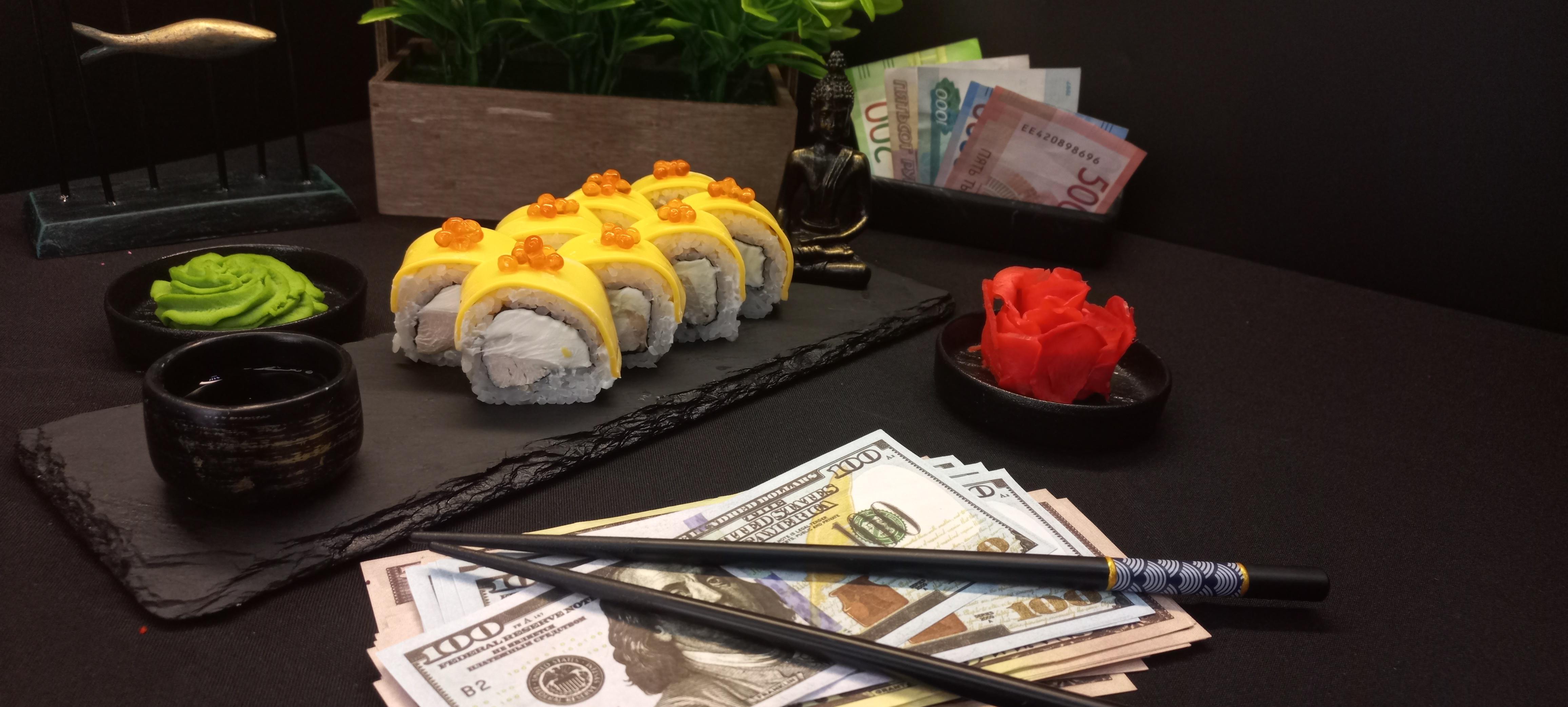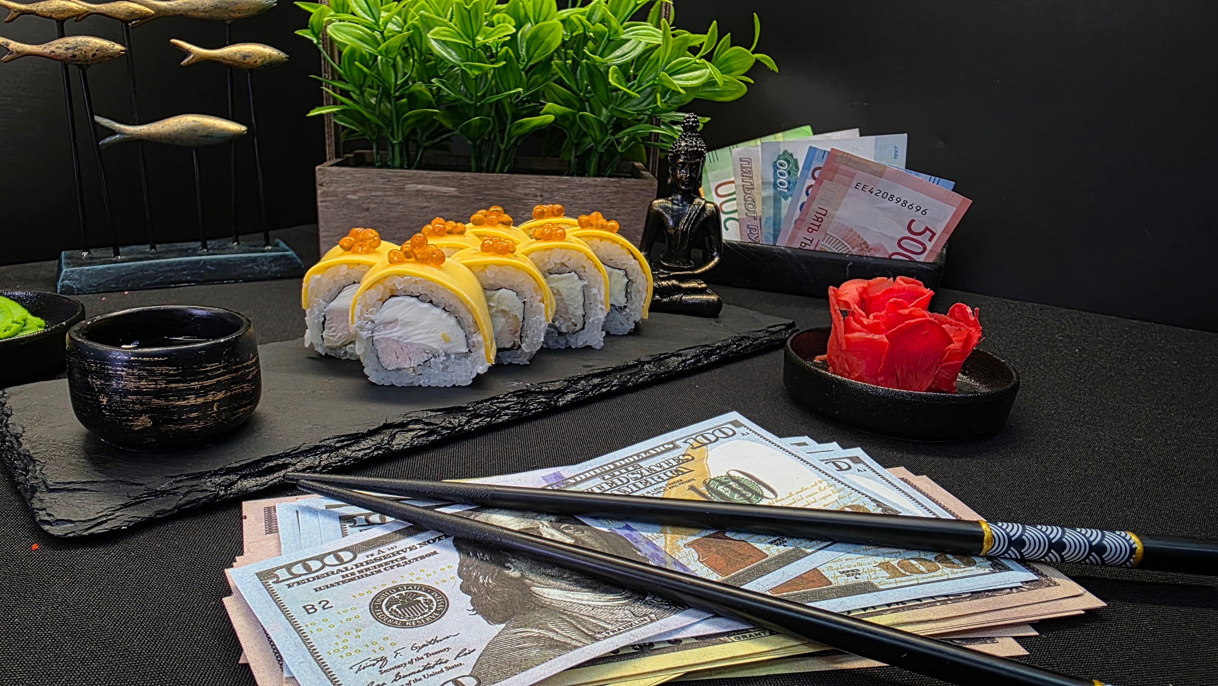 Этот ролл — смелая инвестиция во вкус с намеком на аристократичную дерзость! Сочетание копченой курицы, чеддера, чесночного соуса и икры лосося ломает стереотипы, как успешный миллионер ломает правила рынка. ✅ Нори (лист водорослей) ✅ Рис для суши ✅ Сливочный сыр (Филадельфия) ✅ Копченная курица ✅ Соус чесночный ✅ Сыр чеддер ✅ Икра лосося 230 гр.