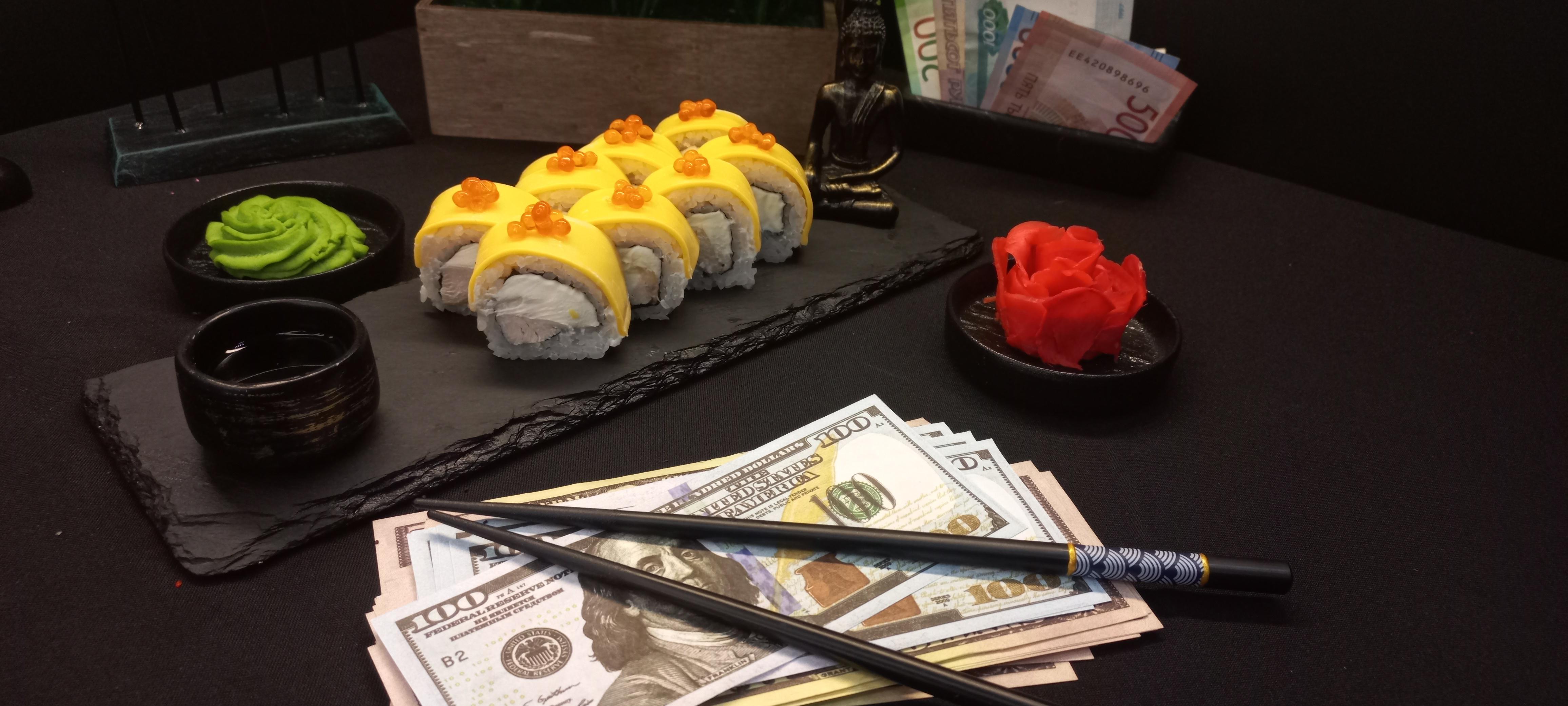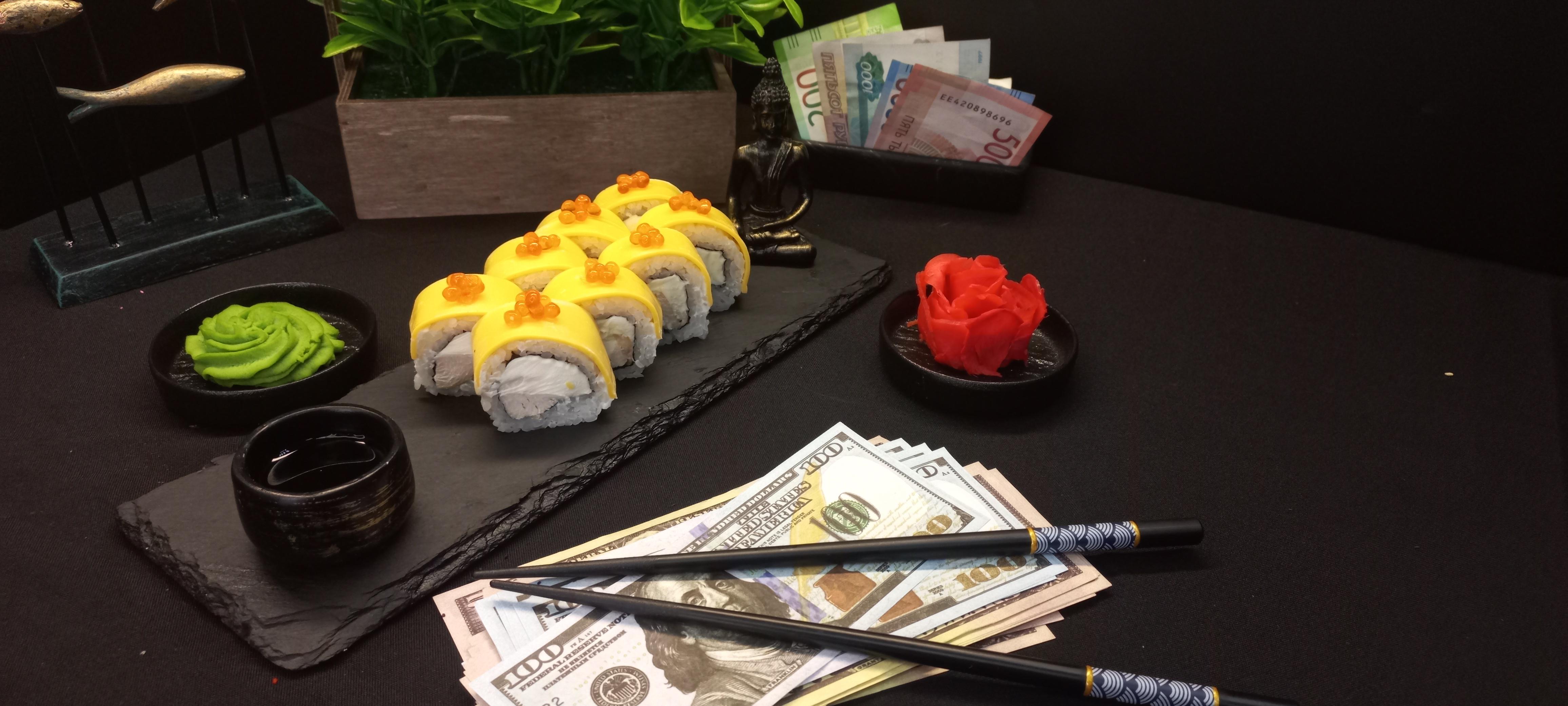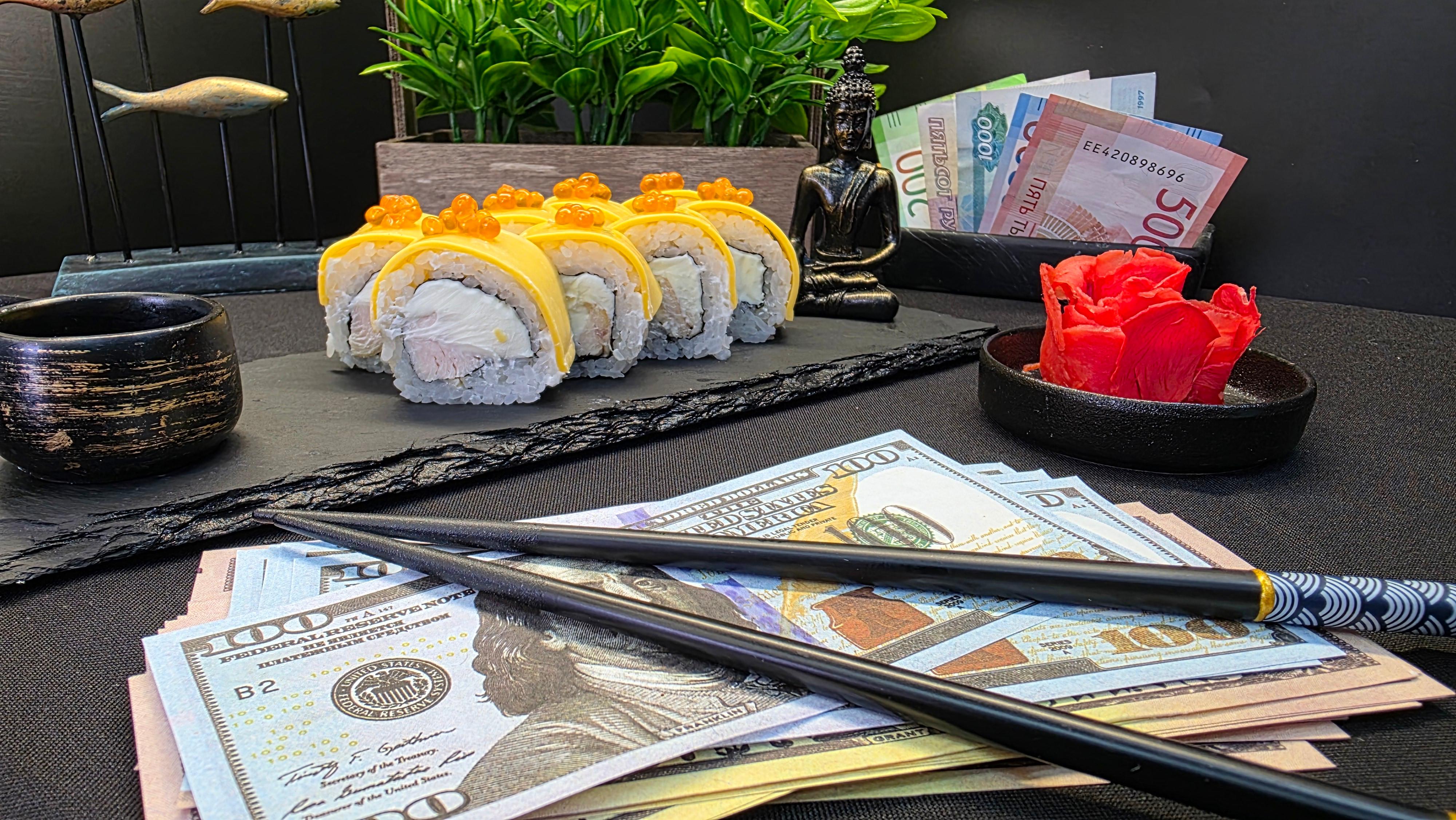 Этот ролл — смелая инвестиция во вкус с намеком на аристократичную дерзость! Сочетание копченой курицы, чеддера, чесночного соуса и икры лосося ломает стереотипы, как успешный миллионер ломает правила рынка. ✅ Нори (лист водорослей) ✅ Рис для суши ✅ Сливочный сыр (Филадельфия) ✅ Копченная курица ✅ Соус чесночный ✅ Сыр чеддер ✅ Икра лосося 230 гр.