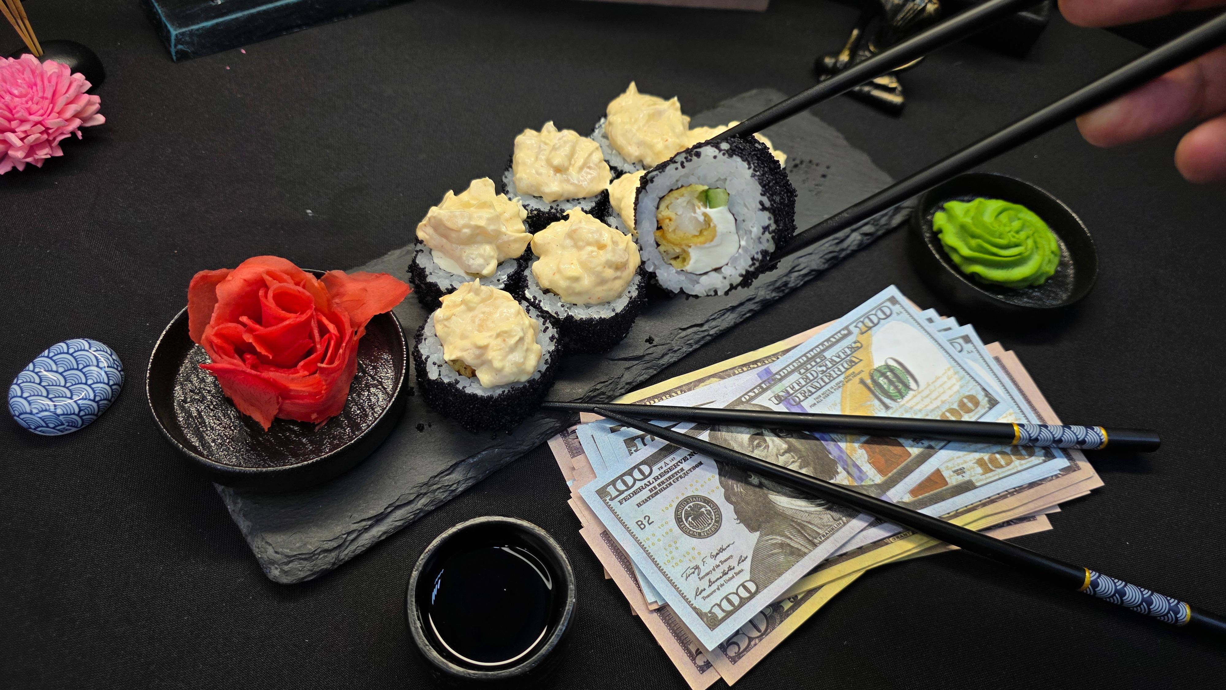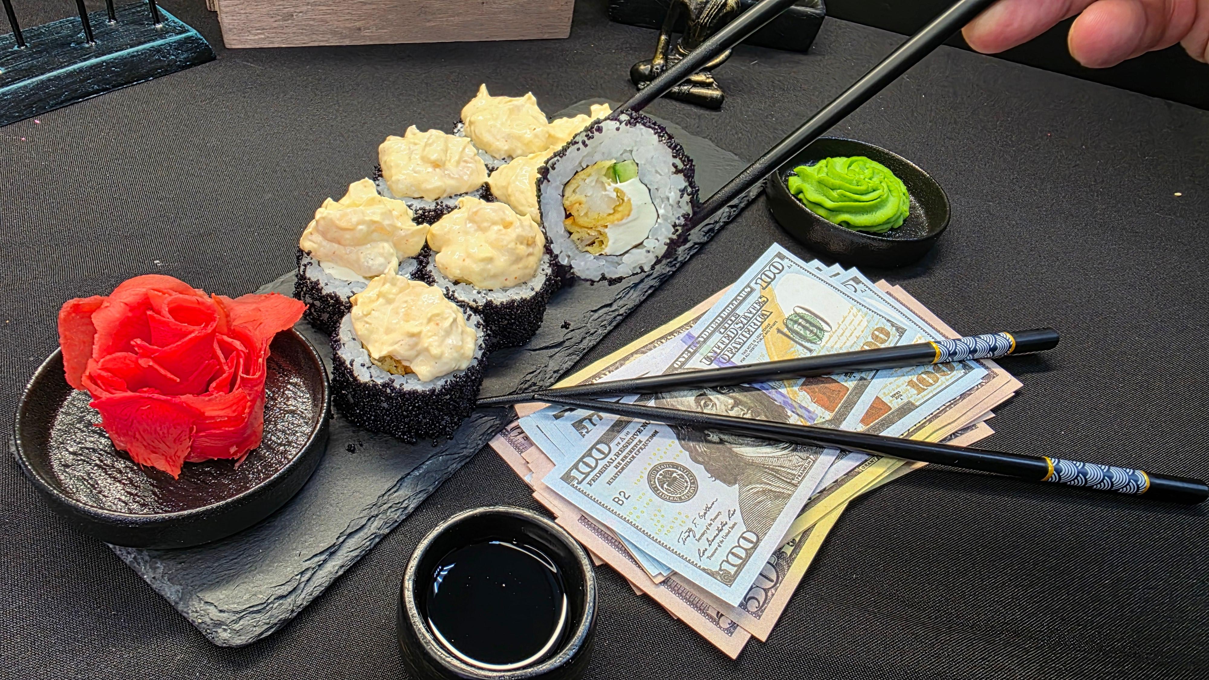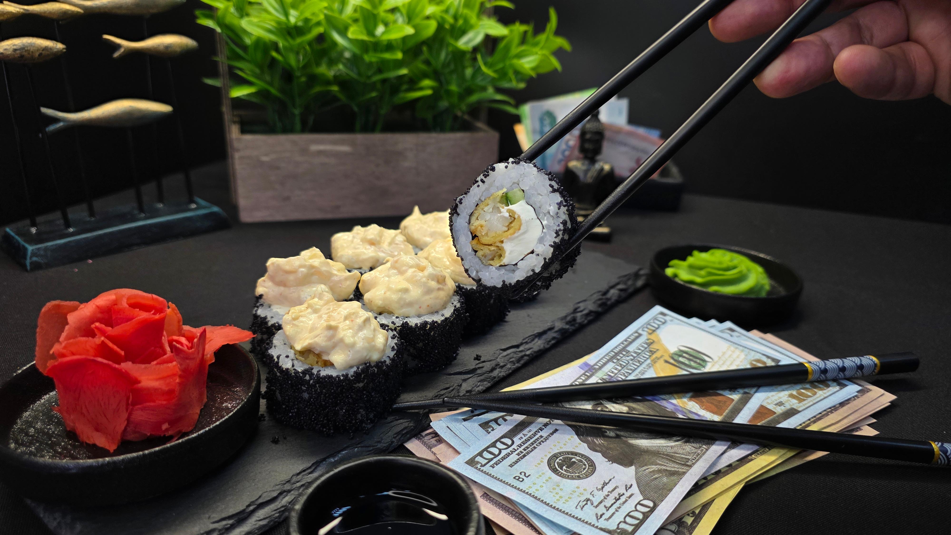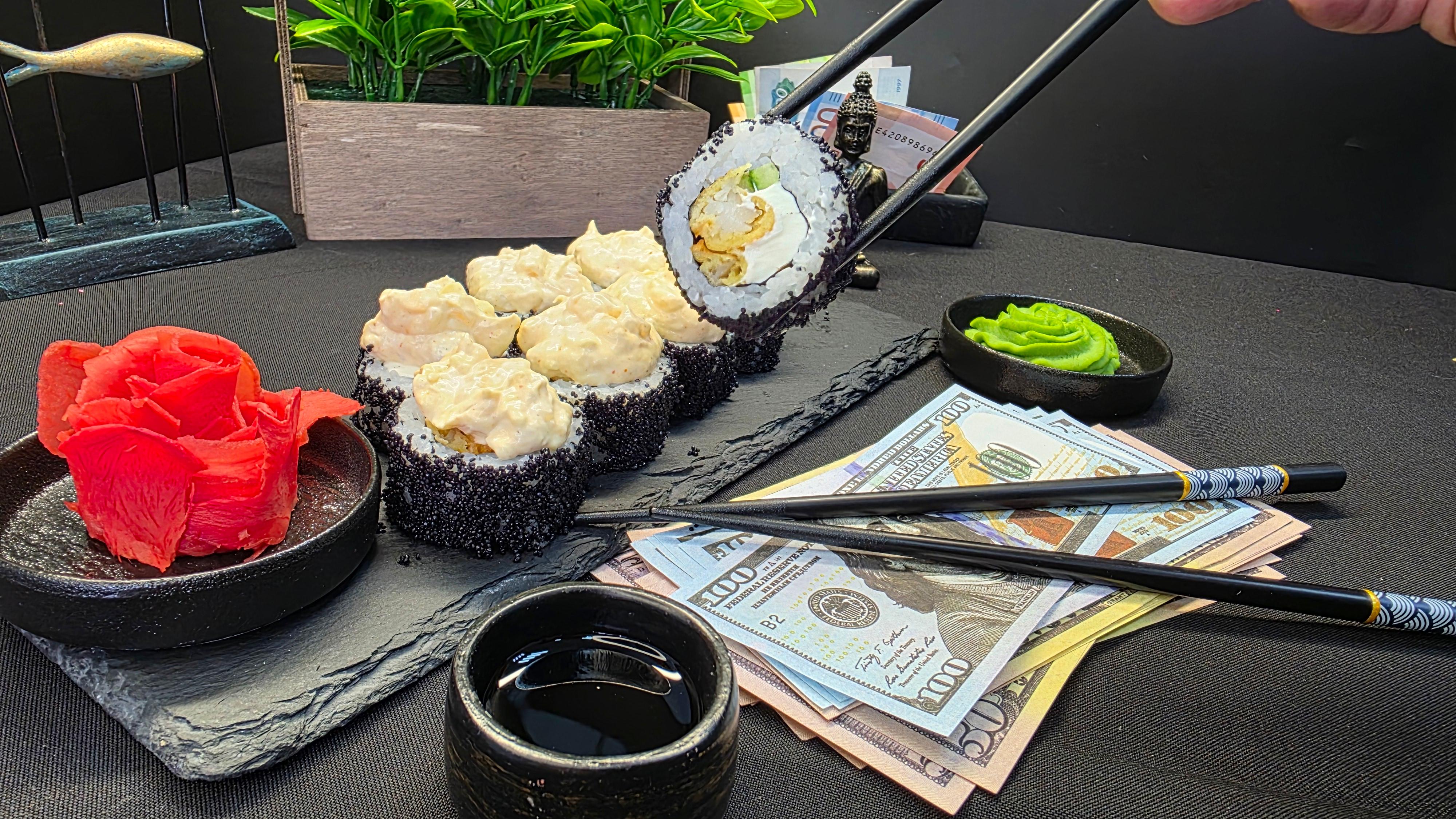 Этот ролл — вершина морской роскоши и текстурного безумия! Хрустящий окунь темпура, нежнейший морской гребешок, икра тобико, два соуса и кремовый сыр — это выбор миллионера, который не признает полумер и требует от жизни всего и сразу. ✅ Нори (лист водорослей) ✅ Рис для суши ✅ Сливочный сыр (Филадельфия) ✅ Свежий огурец ✅ Окунь темпура ✅ Тобико черное ✅ Морской гребешок ✅ Майонез ✅ Соус спайс 310 гр. "Бесконечно кредитная карта "