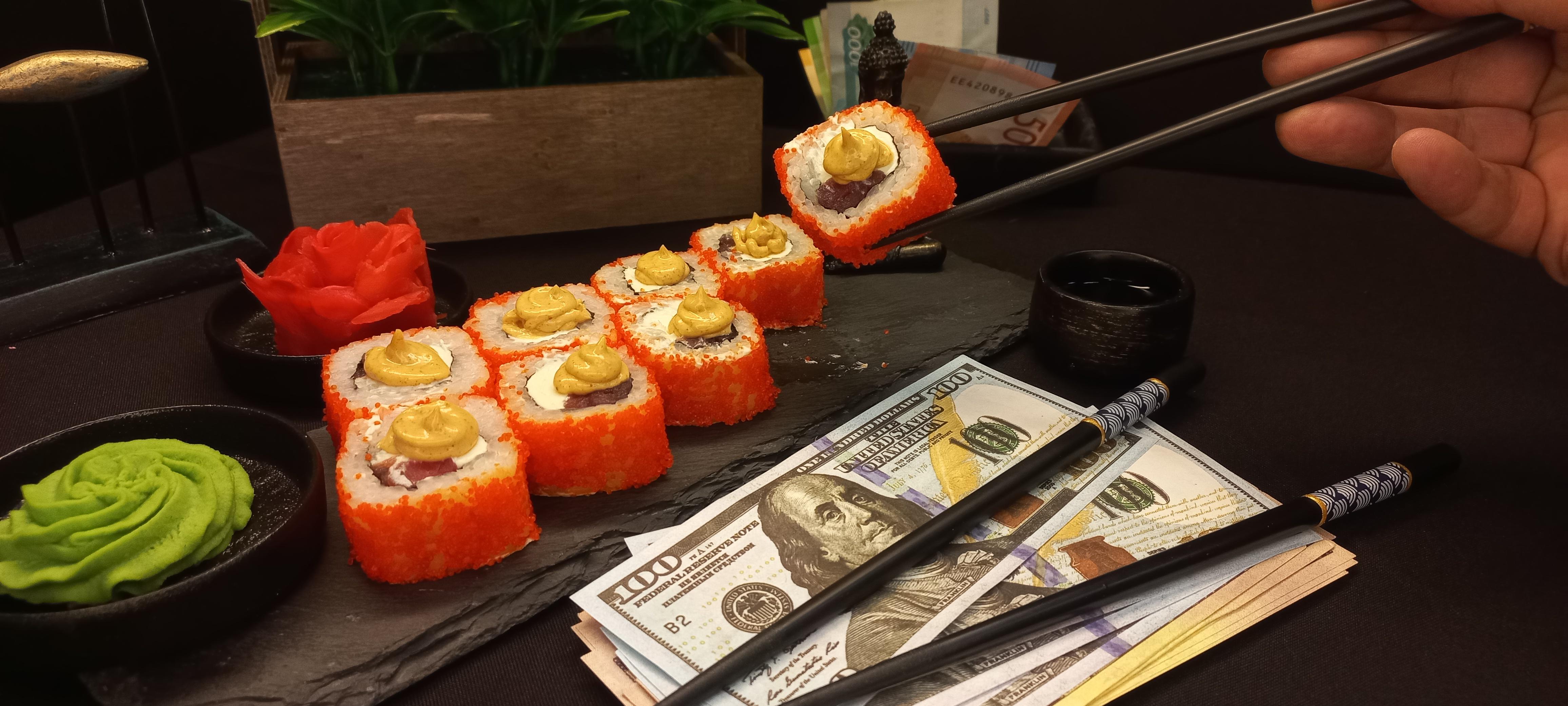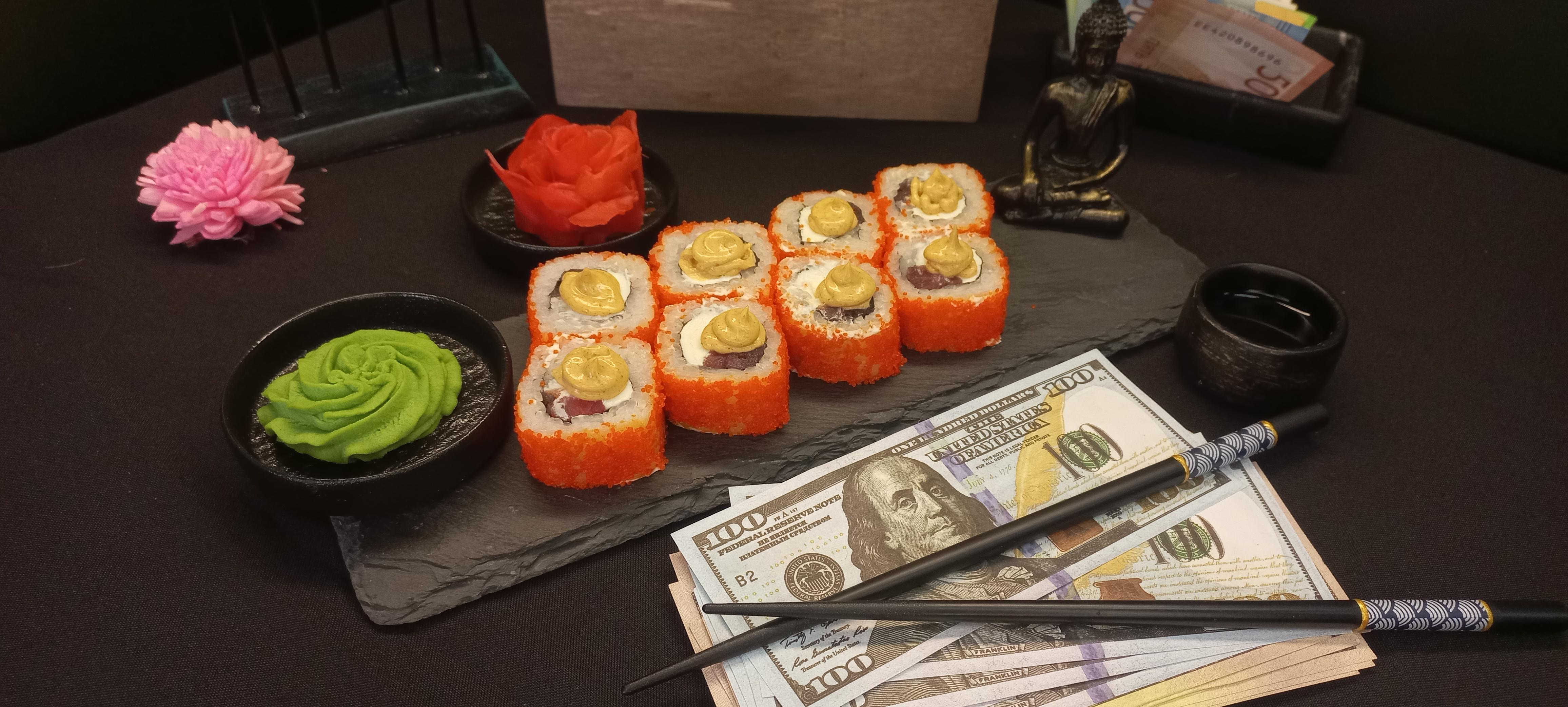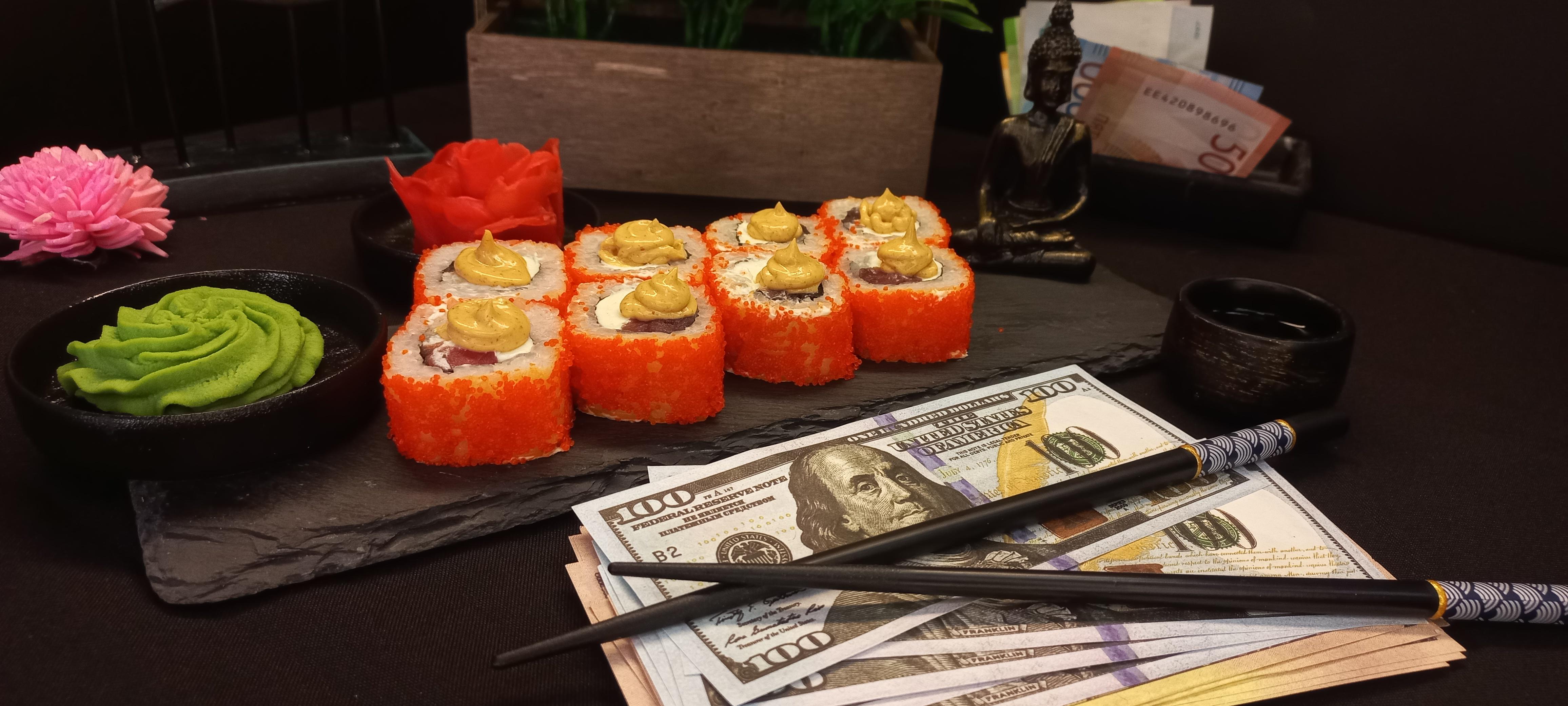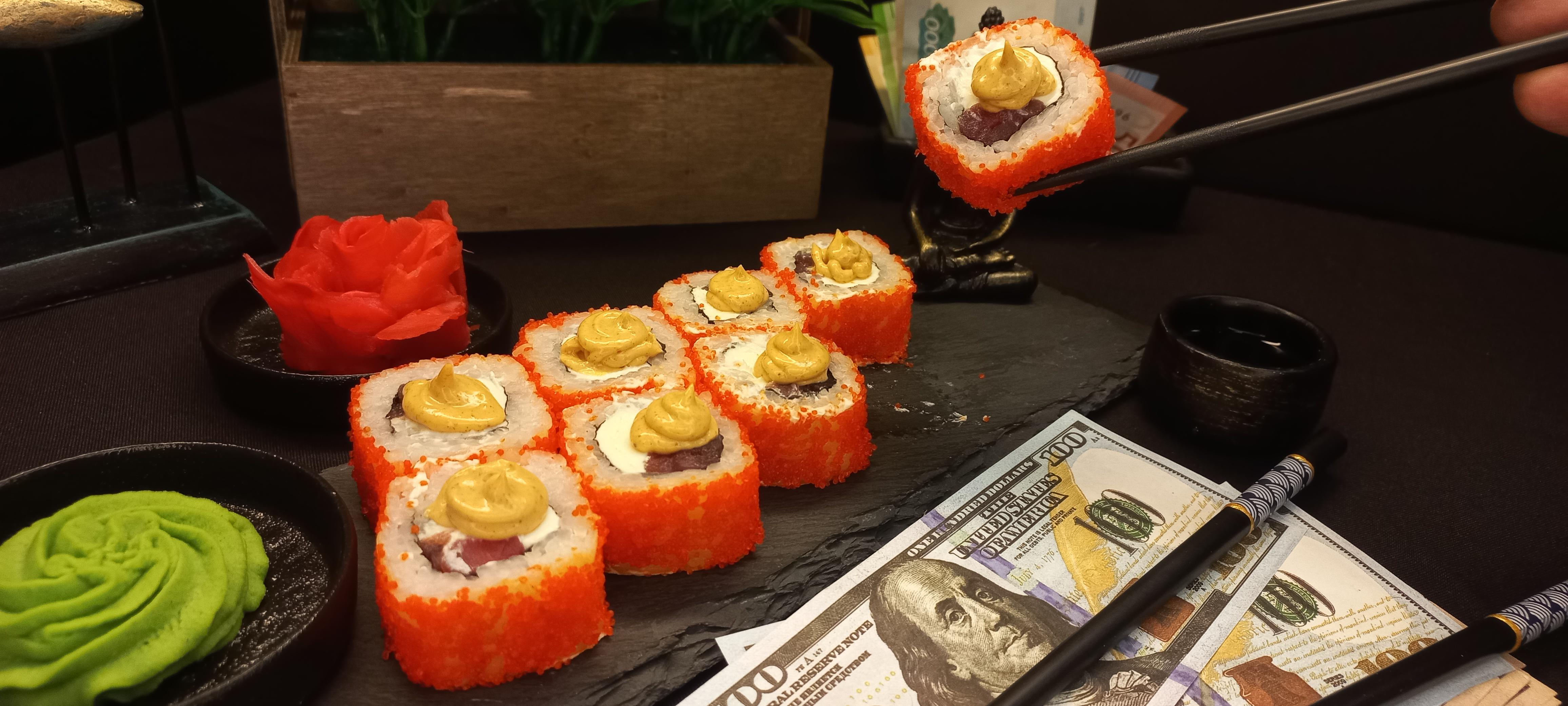 Этот ролл — мощный, дерзкий и брутальный! Сочетание насыщенного тунца, острой нотки спайс соуса и хрустящей икры тобико — это выбор миллионера, который ценит яркие, уверенные вкусы. Состав: ✅ Нори ✅ Рис для суши ✅ Тунец ✅ Сливочный сыр ✅ Тобико оранжевое ✅ Соус спайс 240 гр