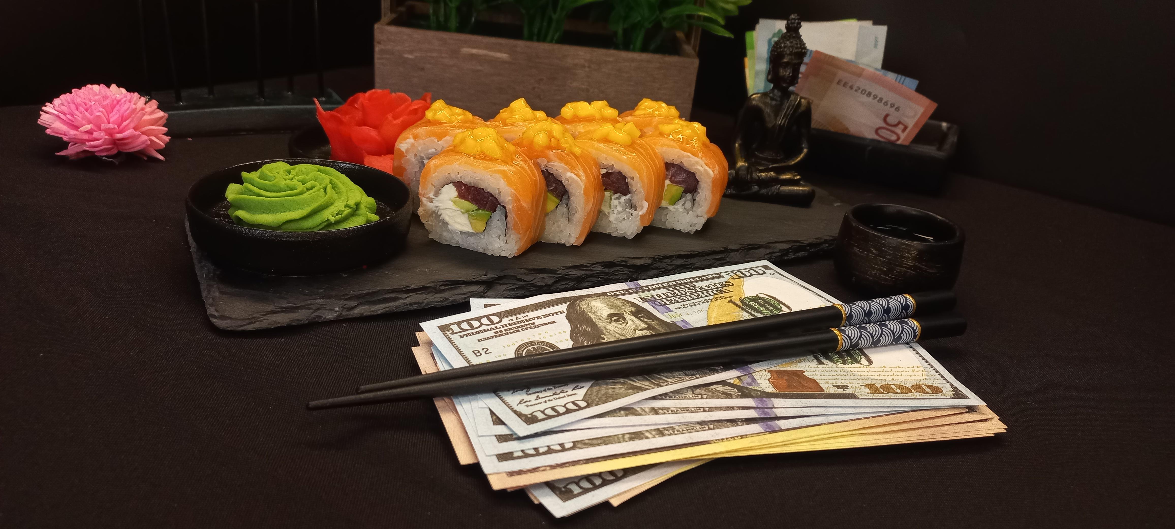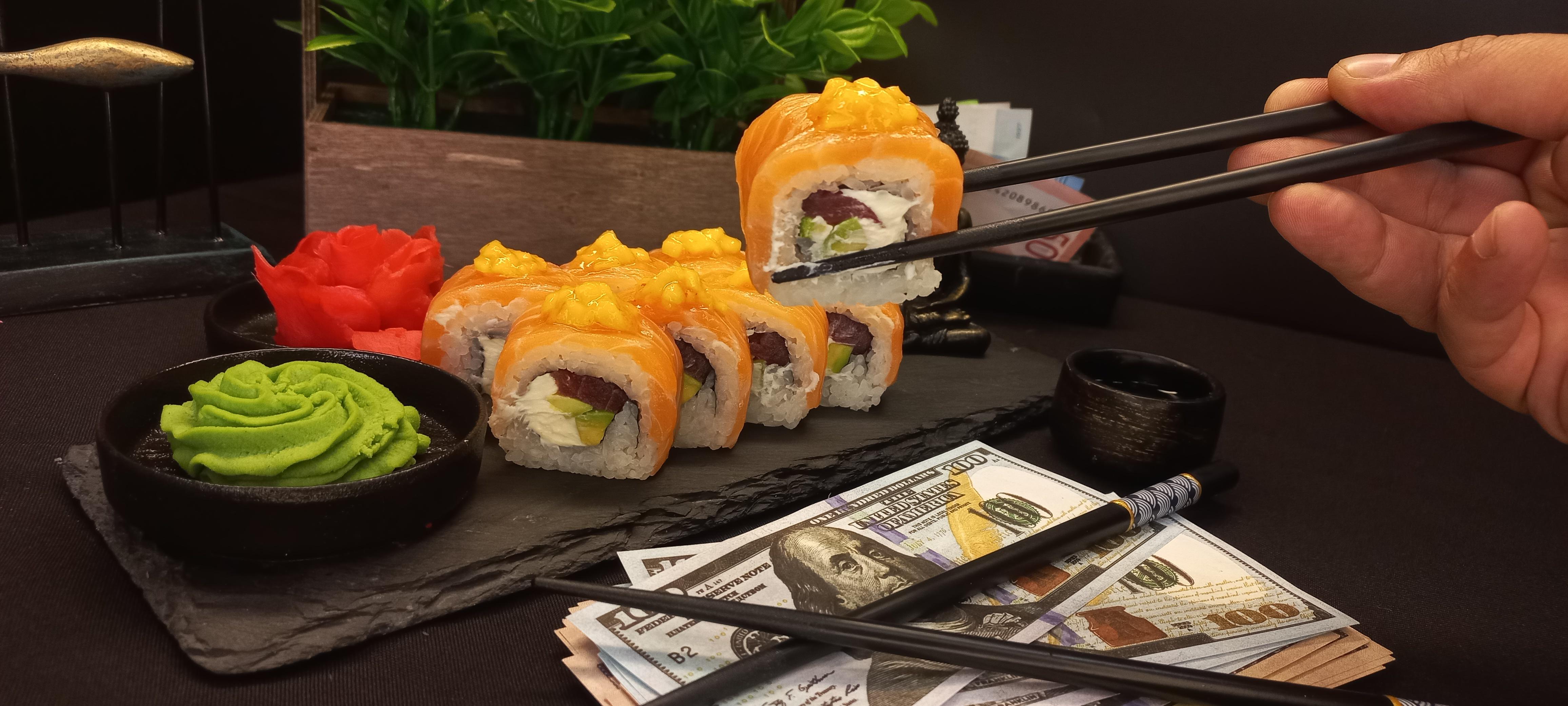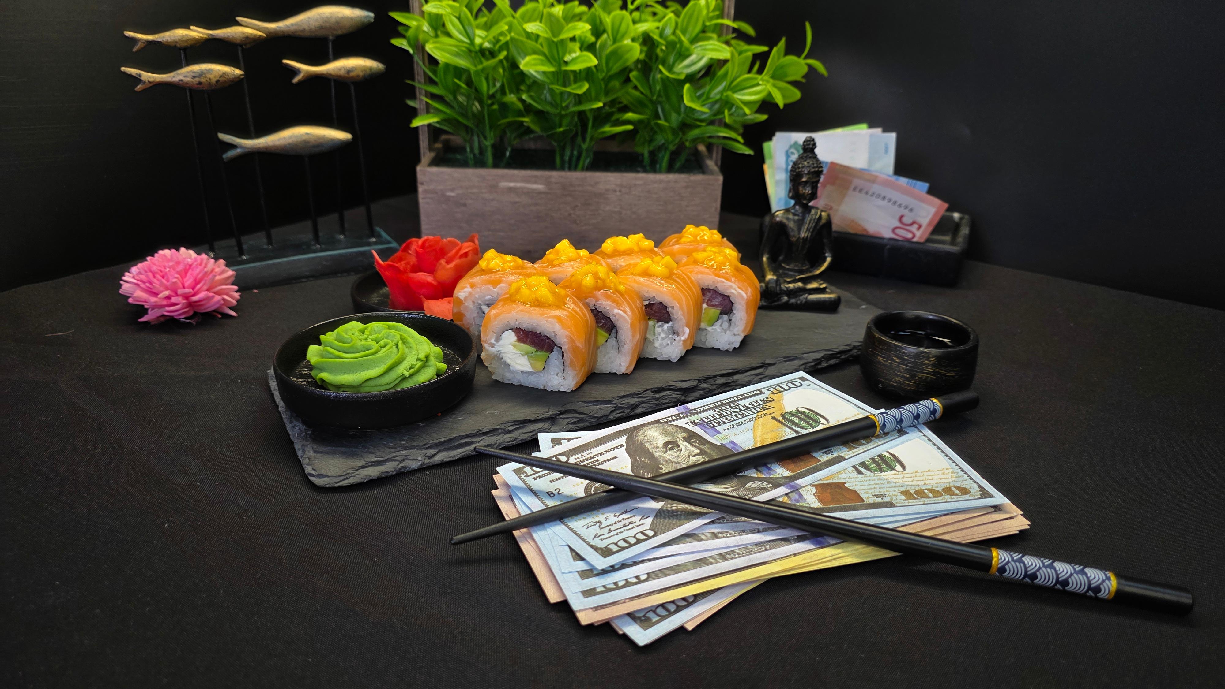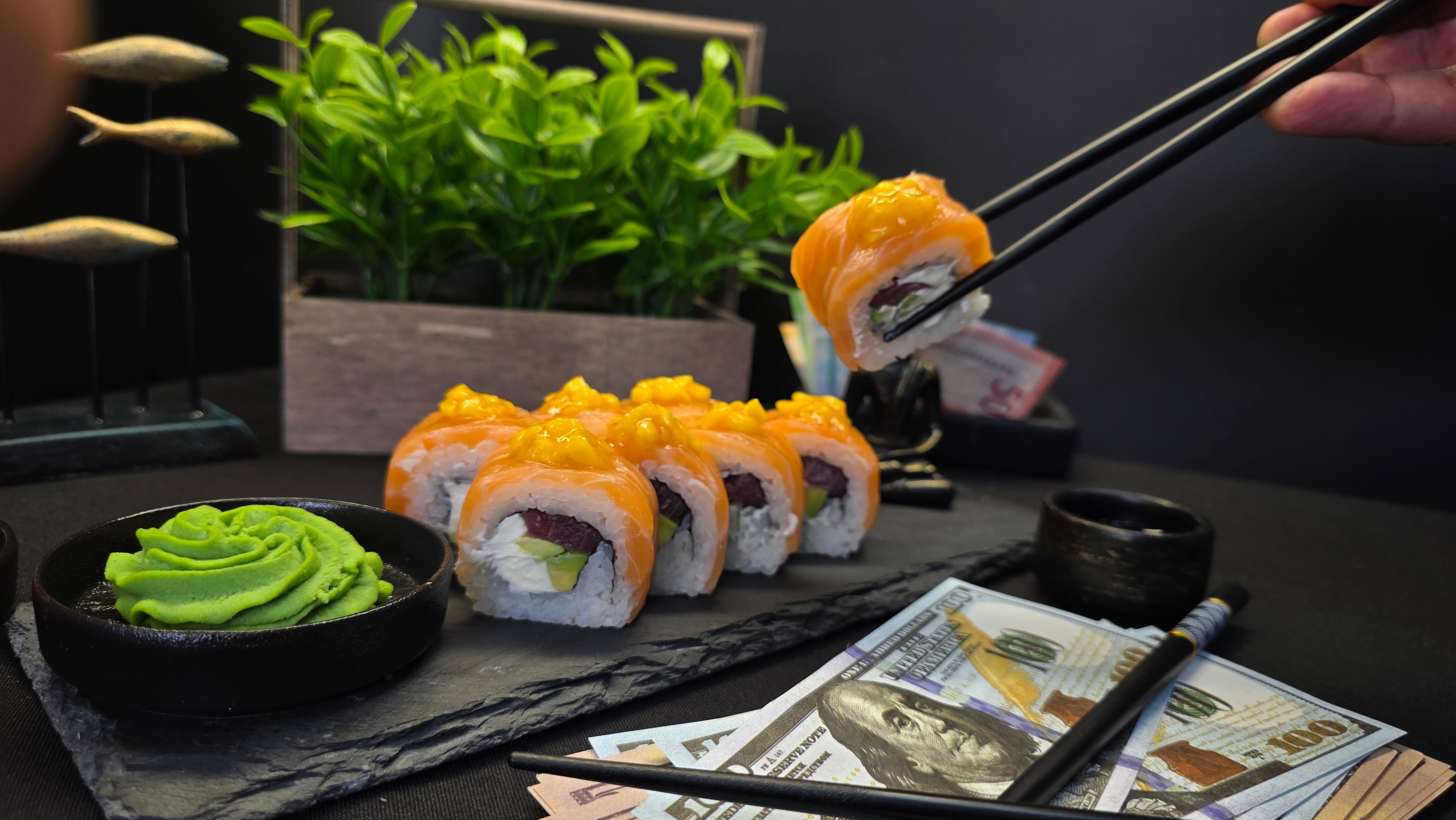 Это настоящий тропический ураган роскоши! Два вида элитной рыбы (тунец и лосось), кремовый сыр, маслянистый авокадо и взрывная сладость манго с пикантным соусом. Это выбор миллионера, который не экономит на удовольствиях и любит экзотику. Состав: ✅ Нори (лист водорослей) ✅ Рис для суши ✅ Тунец ✅ Сливочный сыр (Филадельфия) ✅ Авокадо ✅ Лосось ( свежий или слабо соленный ) ✅ Сочный манго ✅ Пикантный соус манго 305 гр.