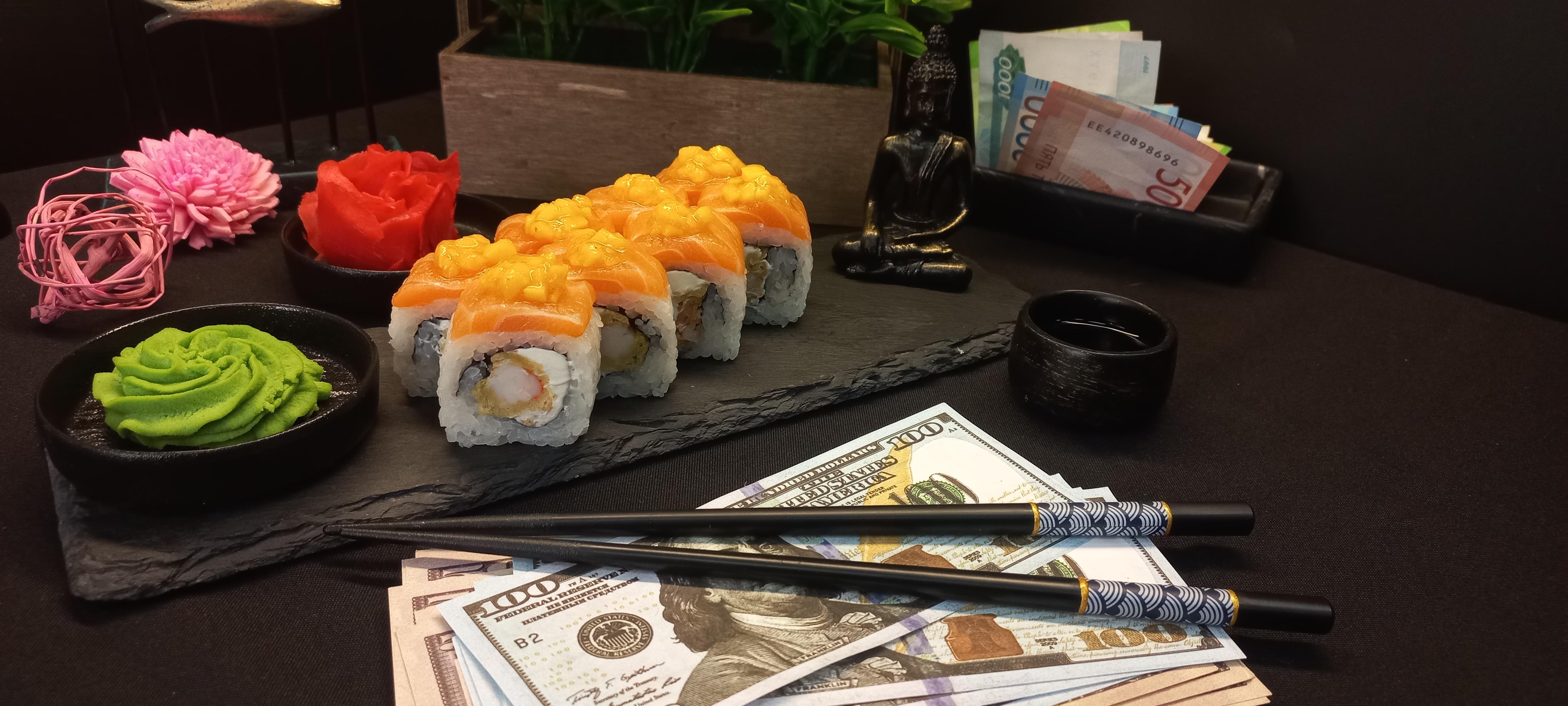 Этот ролл — идеальный шторм роскоши и контрастов! Хрустящая темпура, нежный лосось, кремовый сыр и взрывное сладко-острое манго. Это выбор миллионера, который ценит игру текстур и экзотические сочетания. ✅ Нори (лист водорослей) ✅ Рис для суши ✅ Сливочный сыр (Филадельфия) ✅ Креветки темпура ✅ Лосось ( свежий или слабо соленый ) ✅ Сочный манго в пикантном соусе 290 гр.