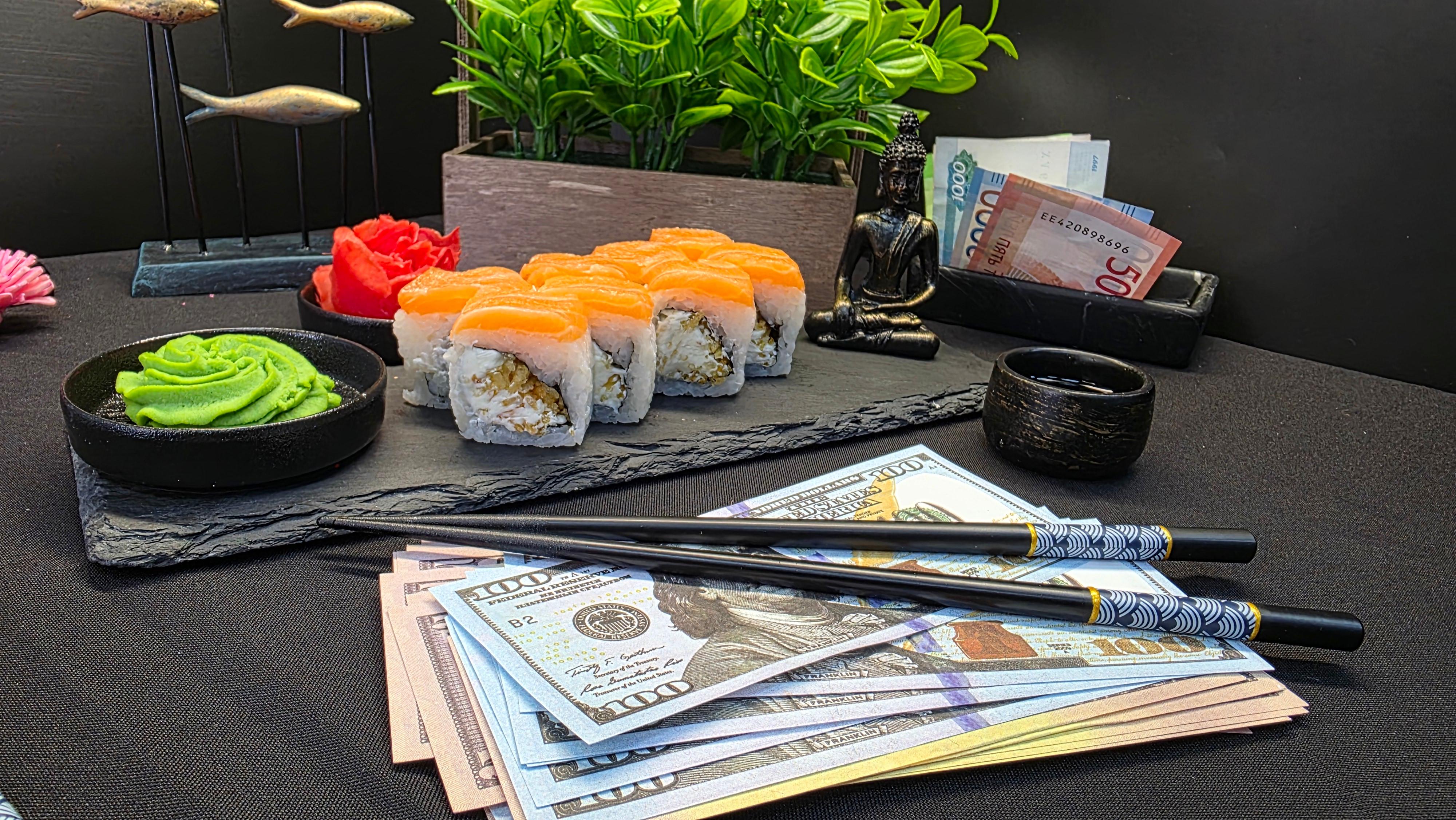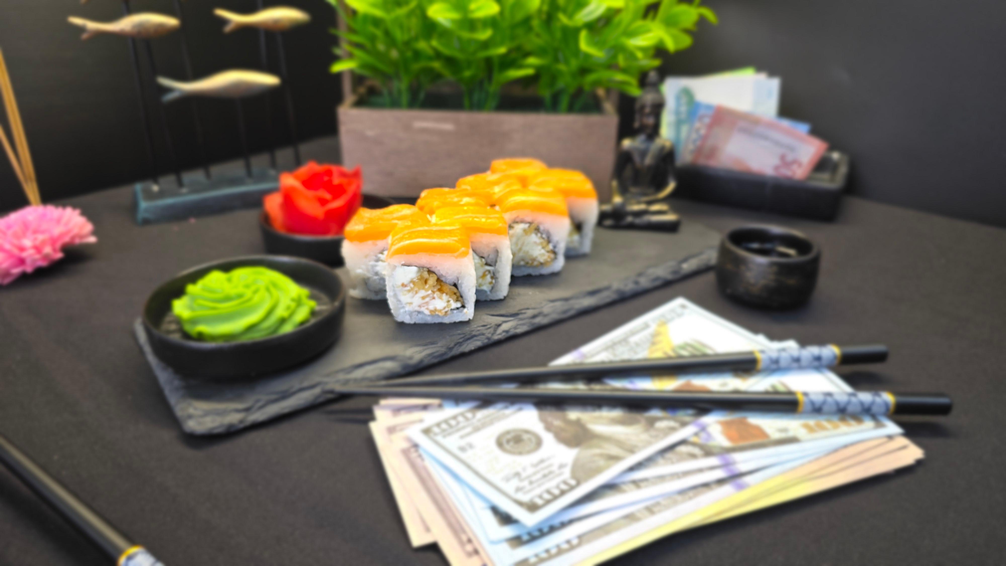 Это неожиданный и дерзкий микс — японская классика встречает американский фастфуд! Сочетание нежного лосося, кремового сыра и хрустящего картофеля фри — это выбор миллионера-новатора, который не боится нарушать правила и ценит игру текстур.. ✅ Нори (лист водорослей) ✅ Рис для суши ✅ Сливочный сыр (Филадельфия) ✅ Картофель фри ✅ Лосось ( свежий или слабо соленный ) 220 гр.