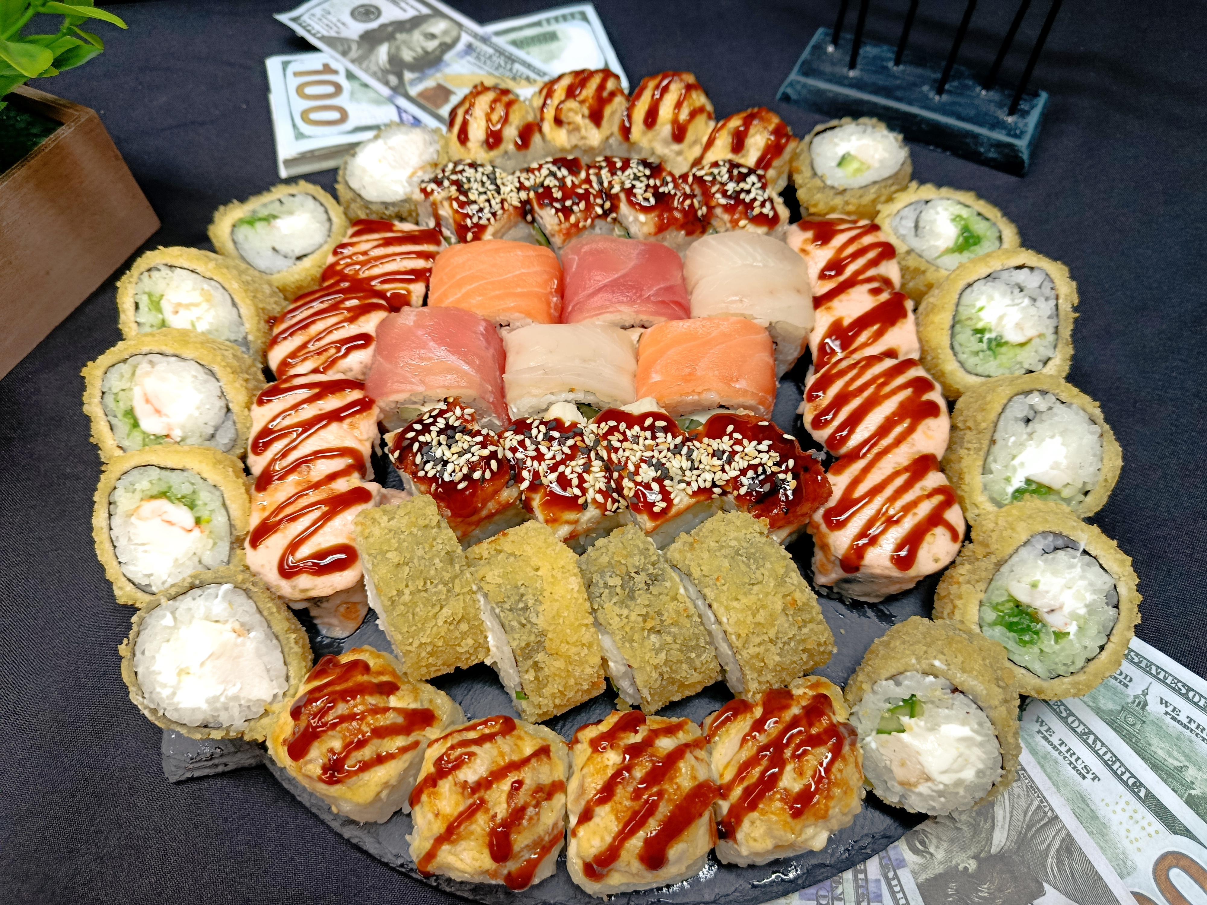Почувствуйте вкус большой жизни. Сет «Аристократ» — это симфония изысканных вкусов, где собраны лучшие позиции меню: 🍣 Триколор — яркость и свежесть в каждом кусочке. 🍣 Канада — нежнейшее сочетание, проверенное временем. 🔥 Запеченный для Миллионера — горячий привет настоящим гурманам. 🐟 Горячий Окунь — пикантная нотка для ценителей. 🌸 Сакурадзима — утонченность японской традиции. 🍱 Тамбора — завершающий аккорд для полного гастрономического счастья. Сет «Аристократ» — идеальный выбор для романтического ужина, деловой встречи или просто чтобы побаловать себя лучшим. «Миллионер» уже спешит к вам . Роскошь быть щедрым доступна каждому. 1600гр. 48 шт.