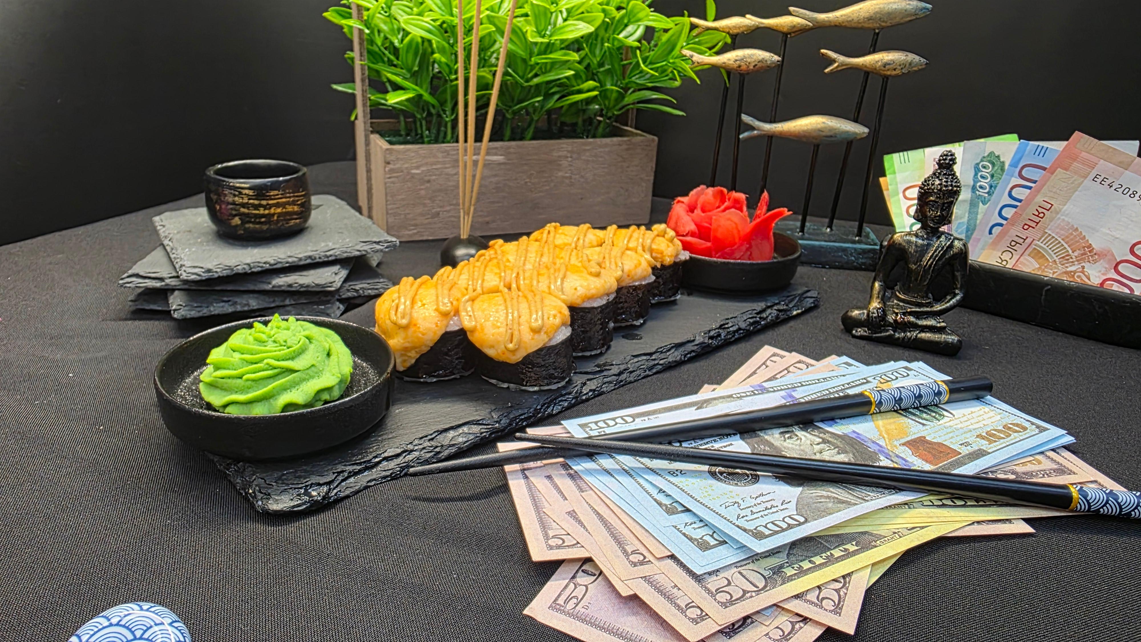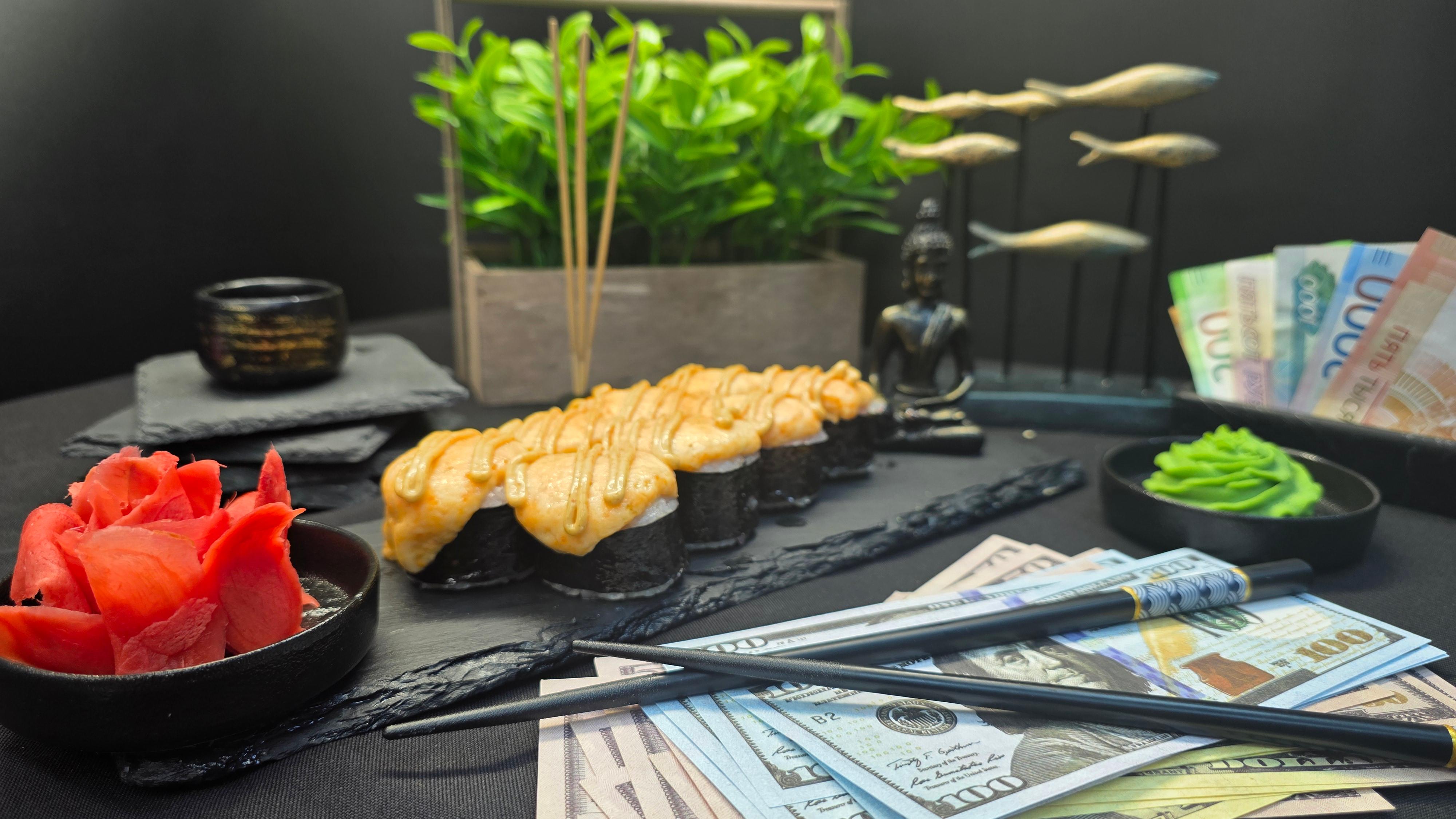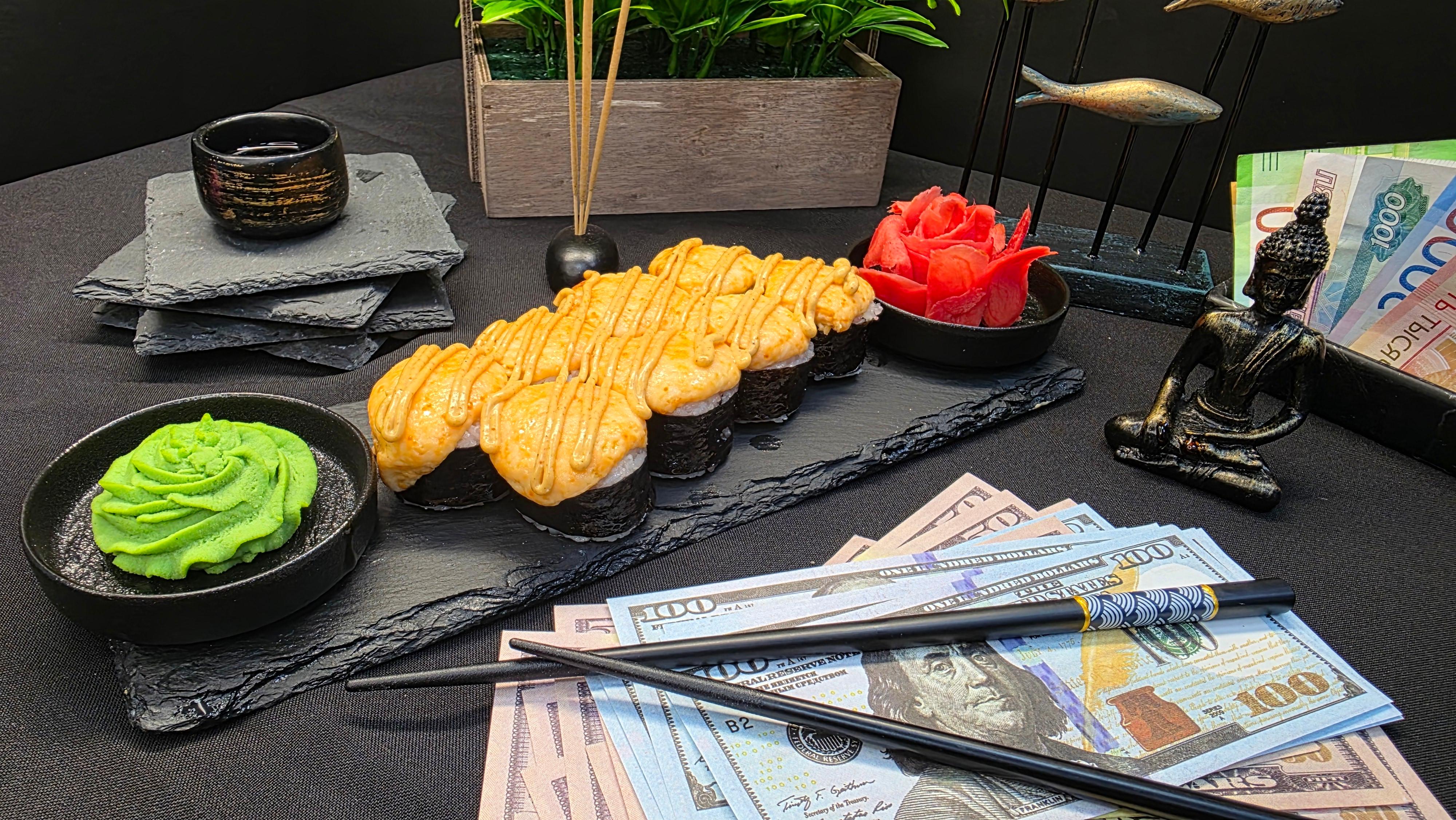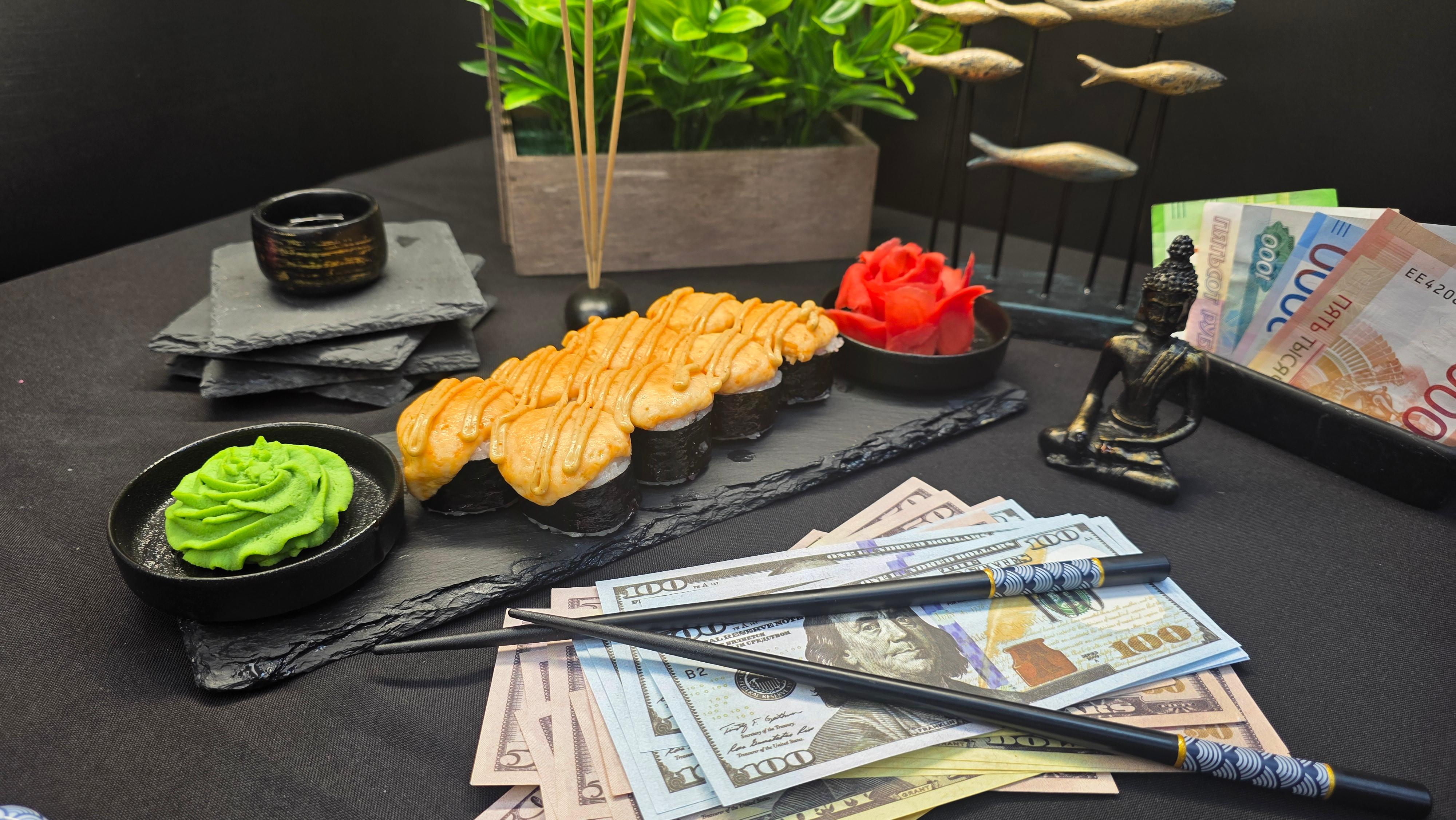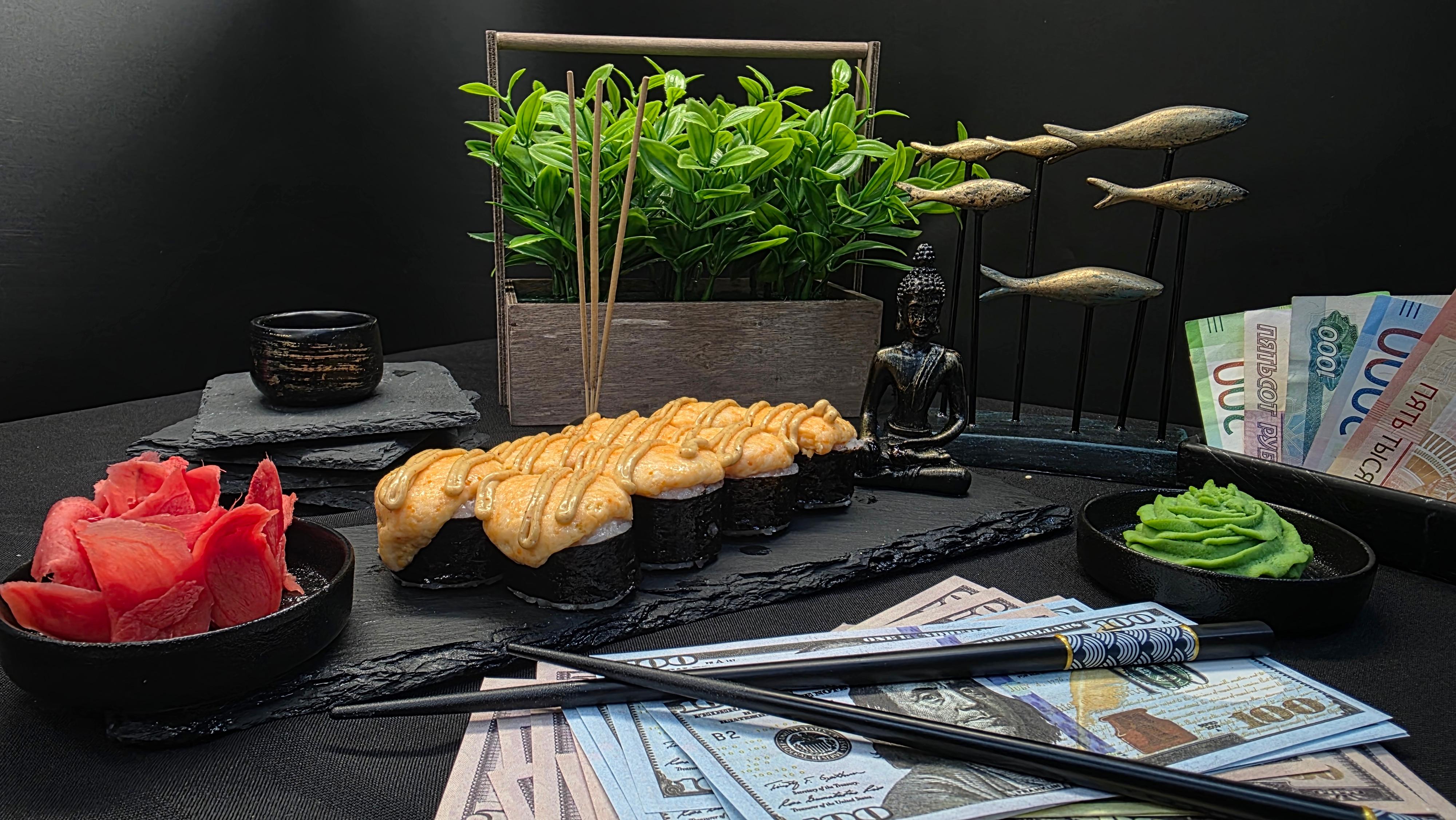 Дорогие гости, аукцион открыт! Ваш лот — свежий тунец под защитой золотого сырного фонда. Огурец вносит ясность и хруст в условия сделки, а соус спайс повышает ставки до предела. Сделайте свой выбор — и он будет немедленно исполнен с первого укуса. ✅ Нори (лист водорослей) ✅ Рис для суши ✅ Тунец ✅ Свежий огурец ✅ Сырный микс ✅ Соус спайс 280 гр.