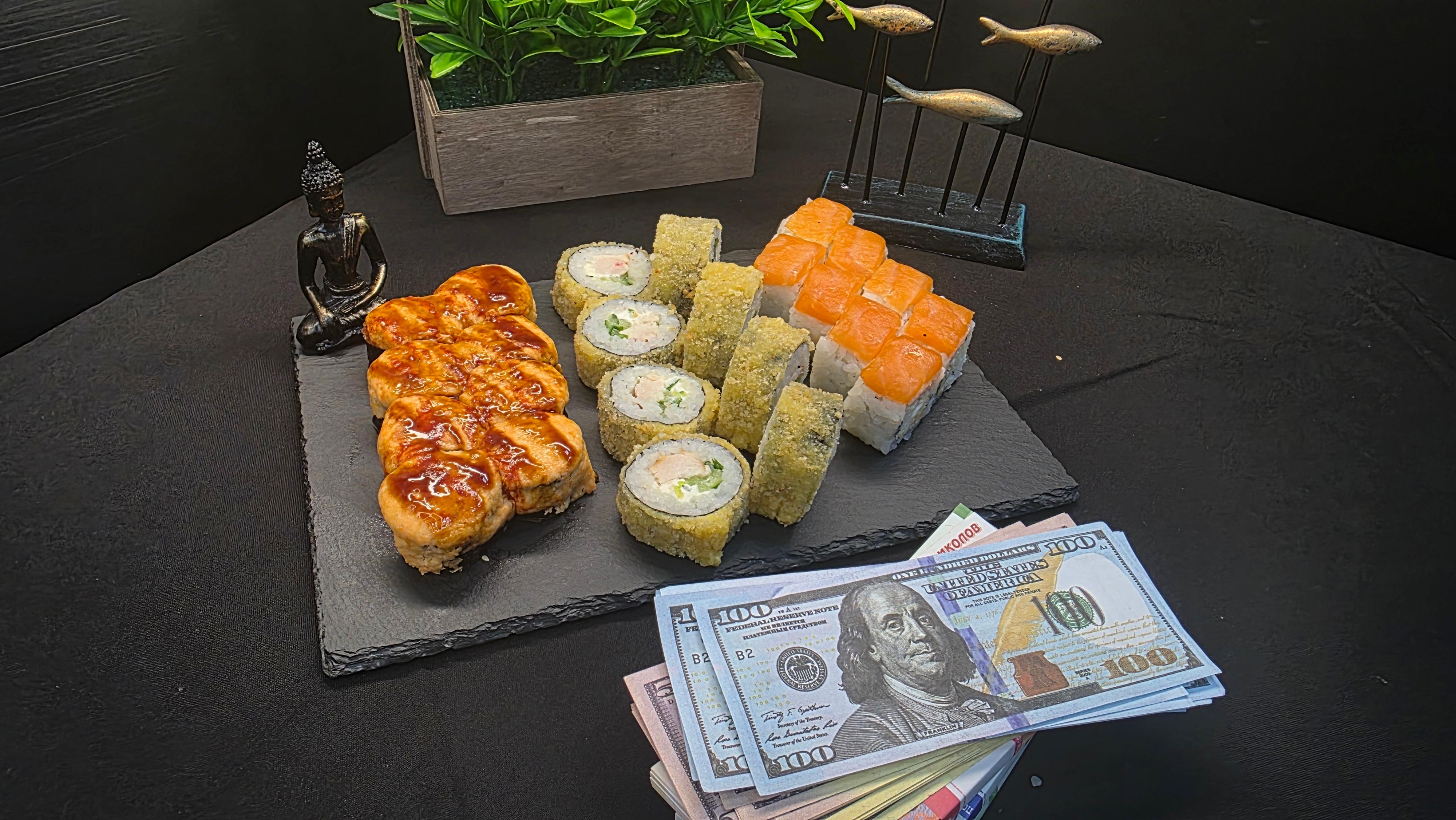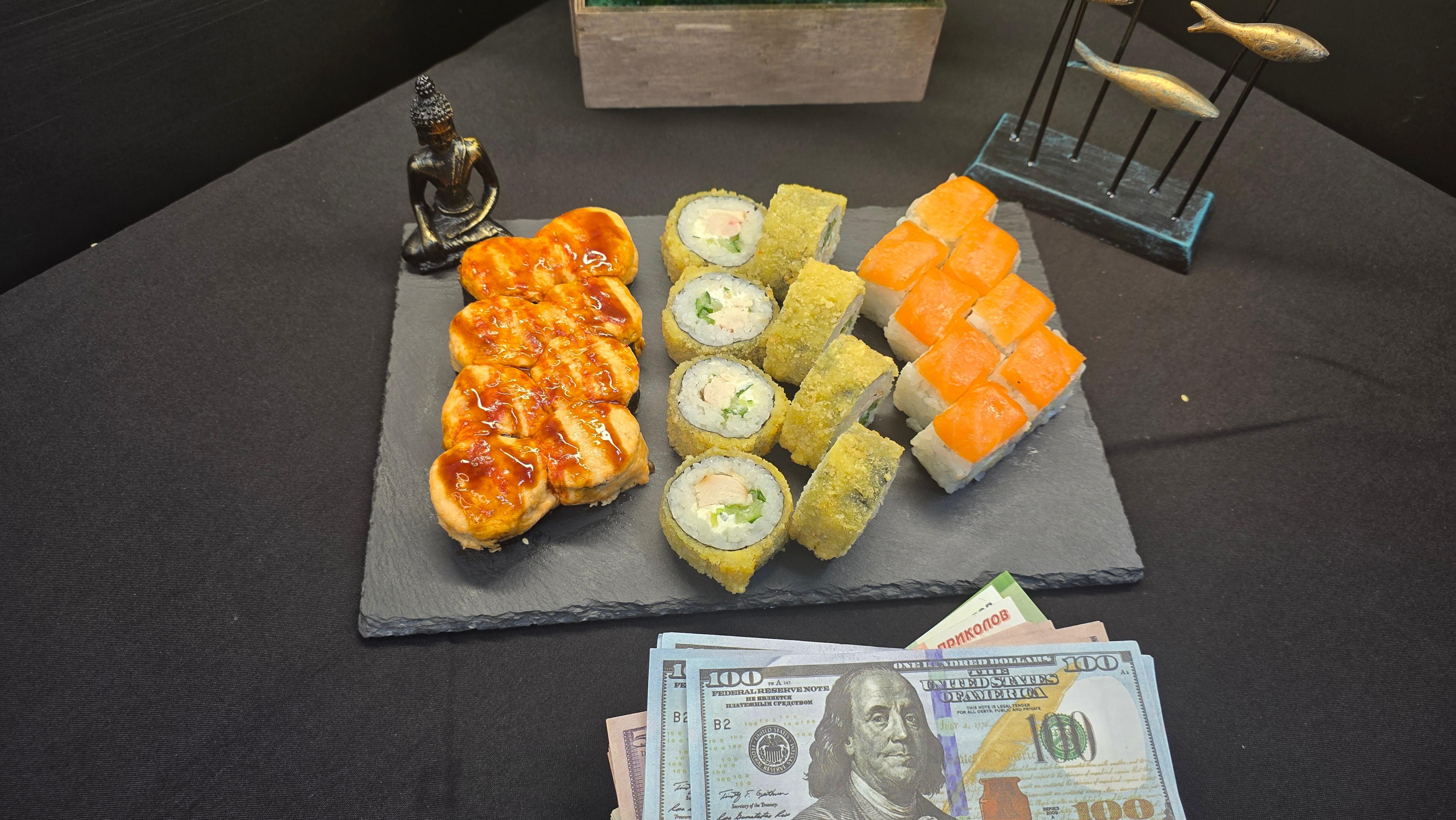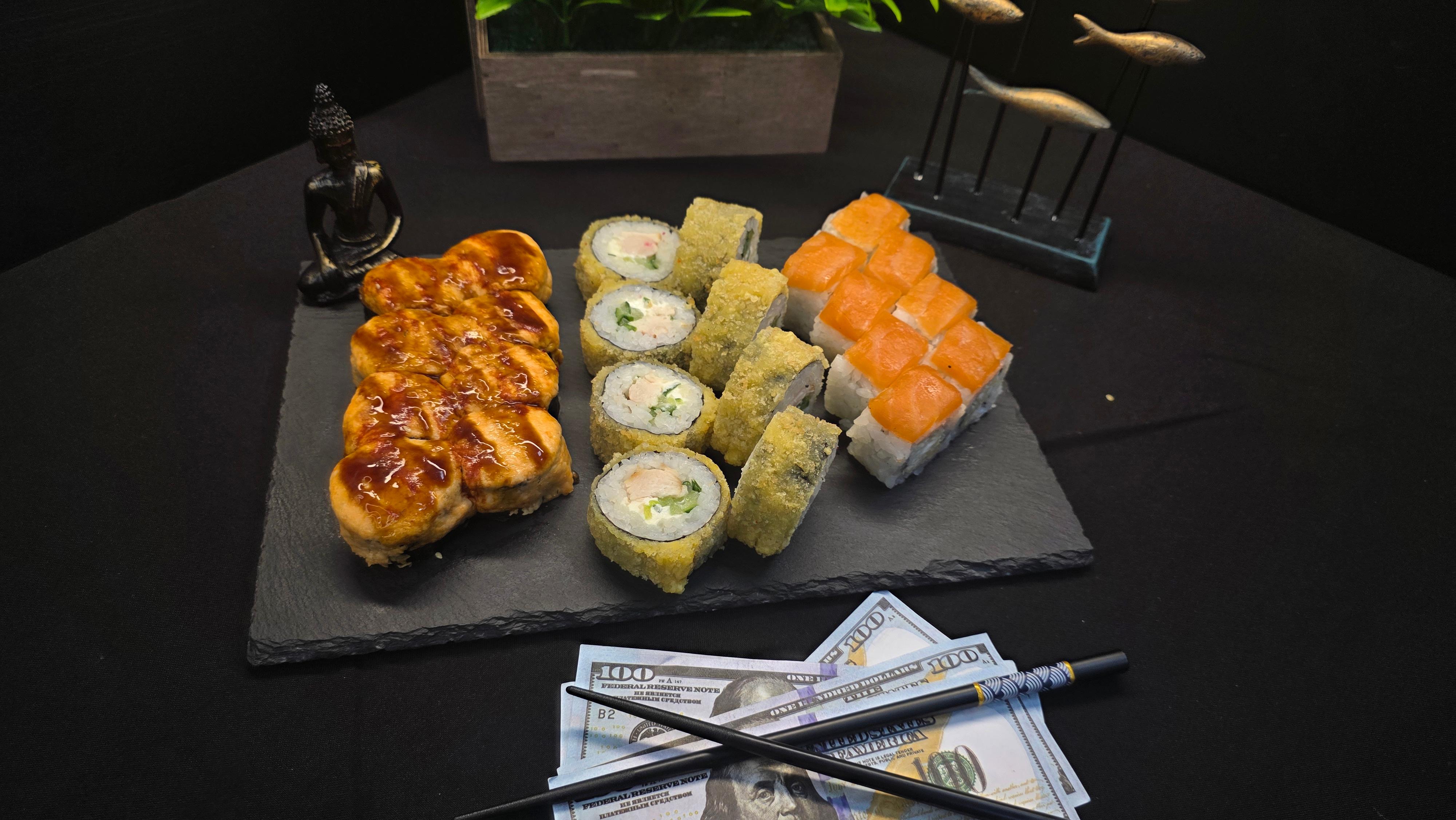Наш финансовый советник предложил гениальный план: инвестировать в три состояния удовольствия вместо одного! Теперь вы можете позволить себе роскошь холодной классики, тёплой нежности и дерзкого хруста по цене одного скромного ужина. ❄️ «Филадельфия Тайм» — Ваш базовый актив. Как швейцарские часы — проверенная временем классика из лосося и огурца. Стабилен и надёжен. 🔥 «Печёный с креветкой» — Фонд тёплых чувств. Нежная креветка под шубой из запечённого сыра. Это вложение в уют и комфорт. 🍤 «Жареный с креветкой» — Агрессивная стратегия. Хрустящий кляр, сочная начинка. Высокий риск (потому что это невероятно вкусно) и максимальная прибыль в виде наслаждения. Диверсифицируйте свой гастрономический портфель! ✅ ФИЛАДЕЛЬФИЯ ТАЙМ ✅ КРАКАТАУ ✅ «КРЕВЕТОЧНЫЙ ТРАНШ» 800 гр.