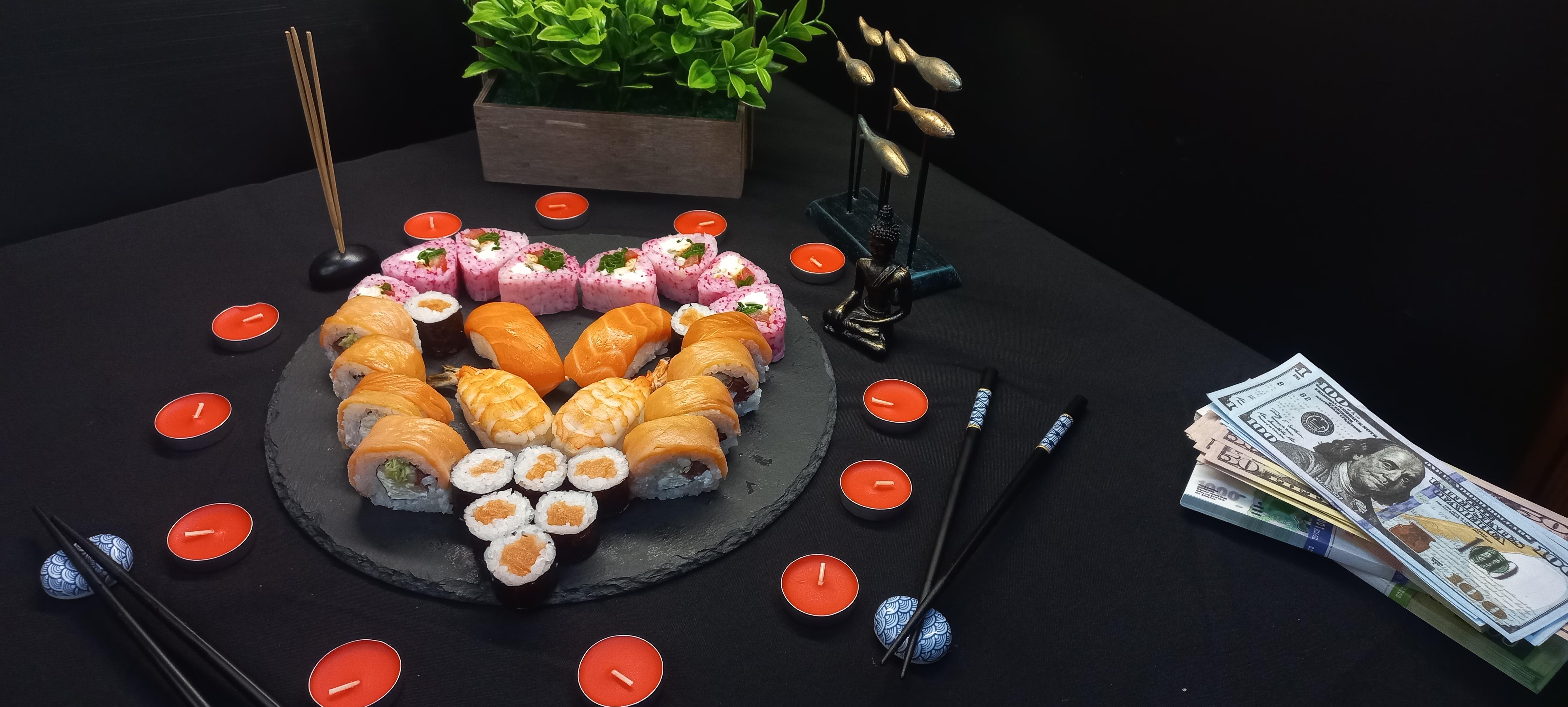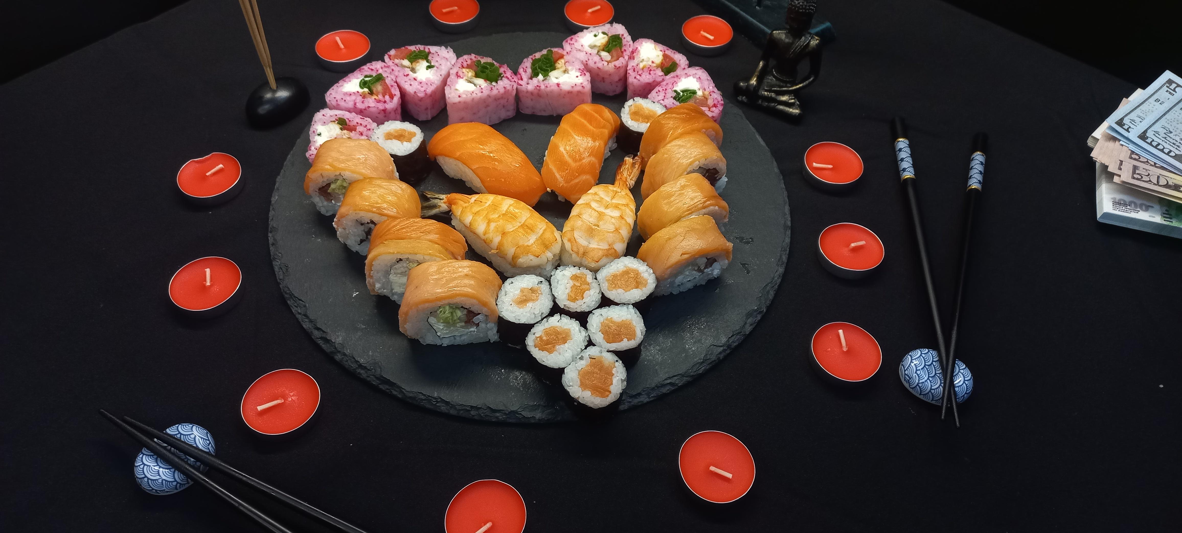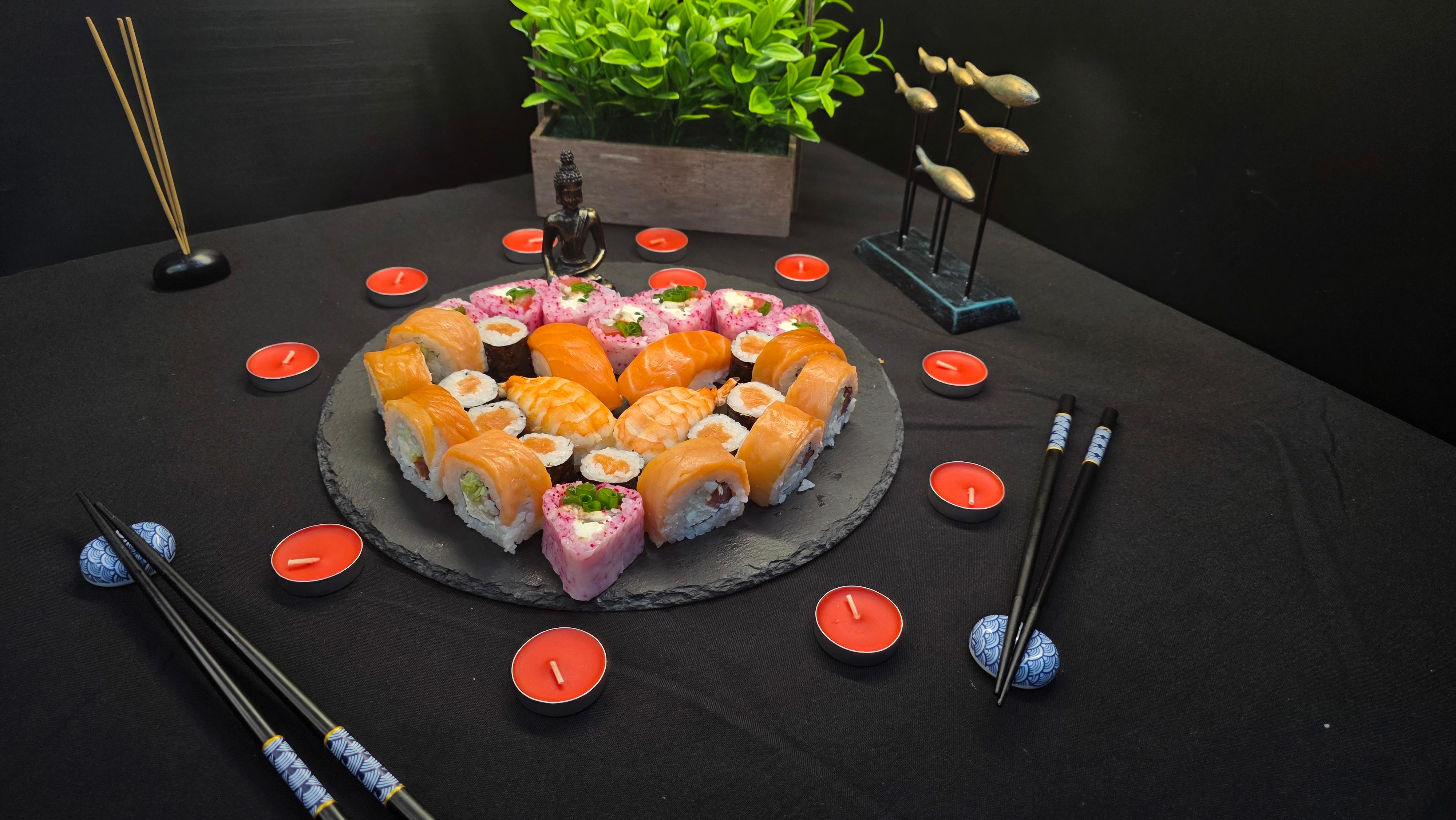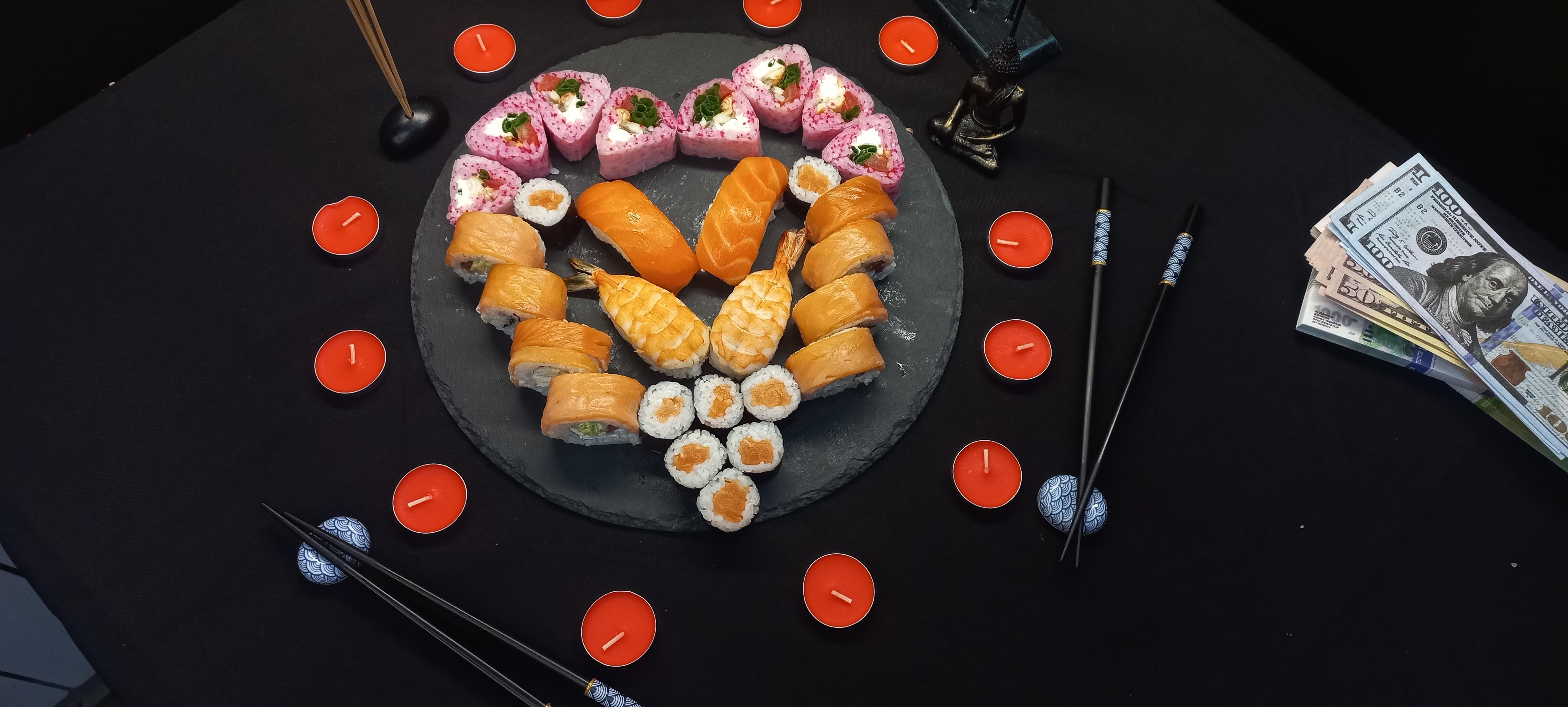 (Тот самый сет, ради которого стоит погасить свет... и зажечь свечи!). Ваш безотказный гастрономический инвестиционный план на вечер. В составе — всё, что нужно для переговоров о капитуляции: страховой полис из четырёх суши, три хладнокровных ролла, умеющих размягчить оборону, и наш главный козырь — романтические свечи , сэт начинённый намёками и ... P.S. Результат не гарантируем, но статистика — на вашей стороне. Приятных переговоров! Форма сердечка — не просто подача, это намёк на ваши намерения. А свечи — чтобы было видно, в чью пользу принято решение. ✅ Сяке макки ✅ Суши Сяке 2 шт. ✅ Суши Эби 2 шт. ✅ РУБИН ✅ ПЕКИНСКАЯ МОНЕТА ✅ свечки 750гр.