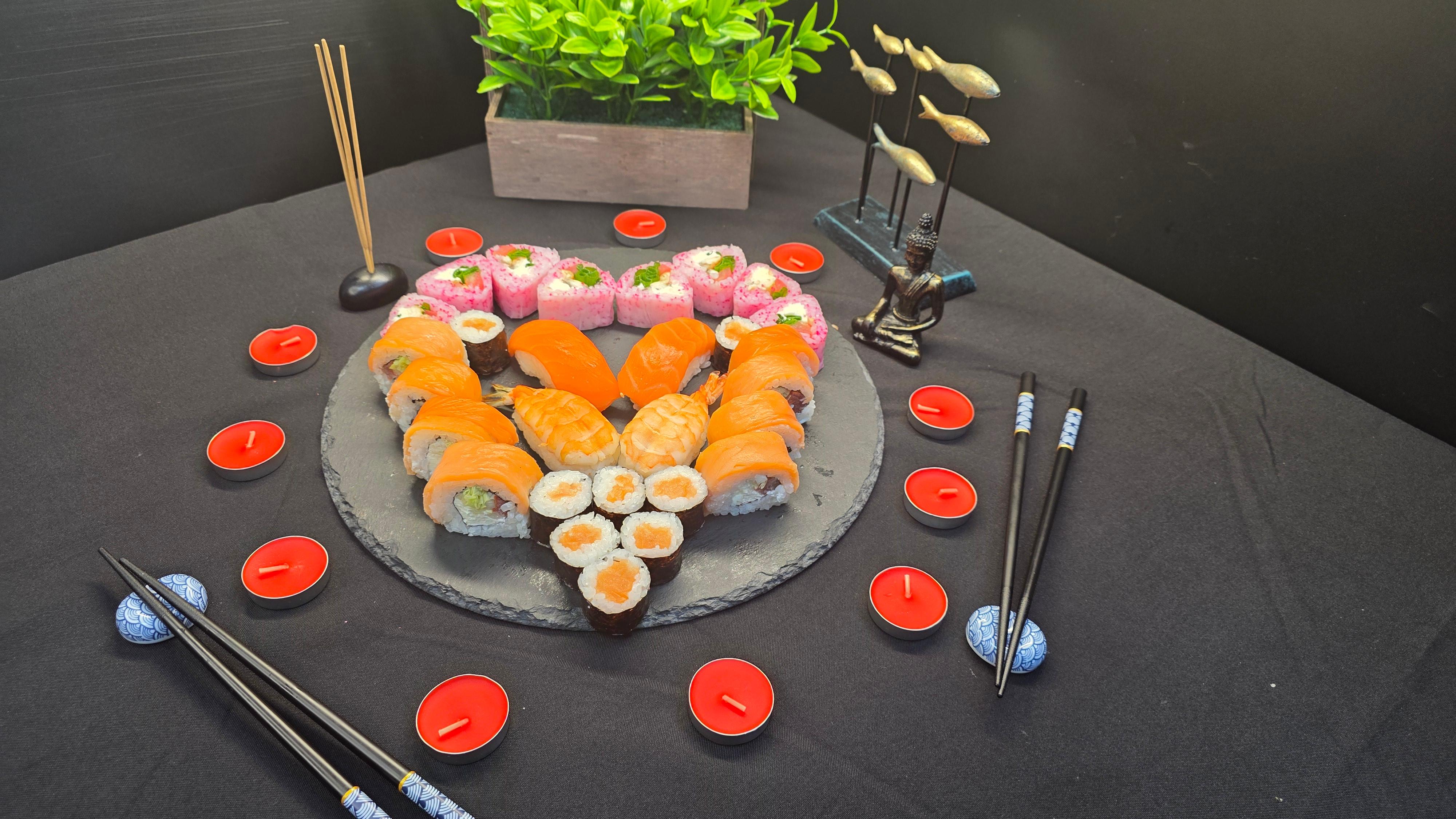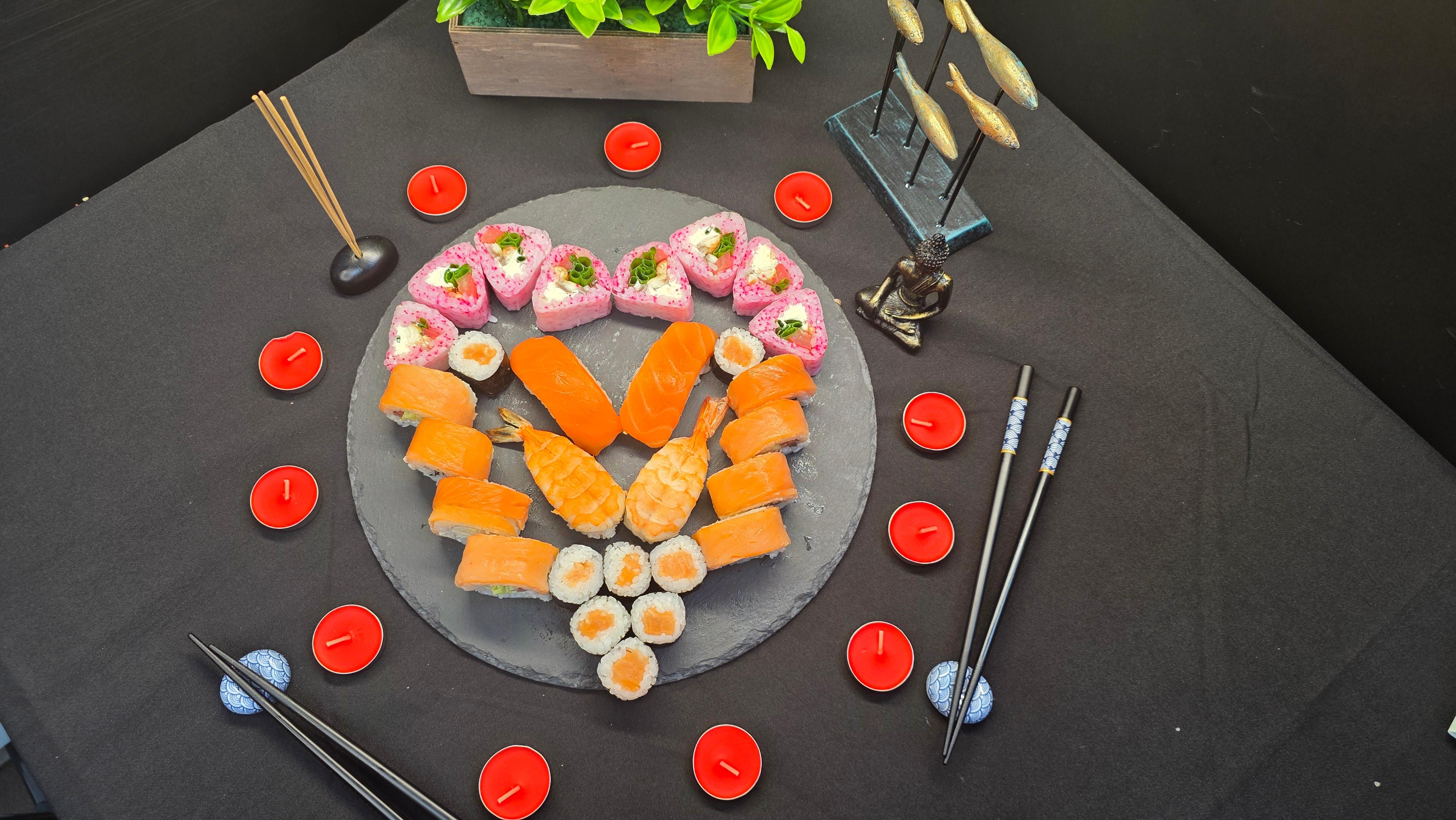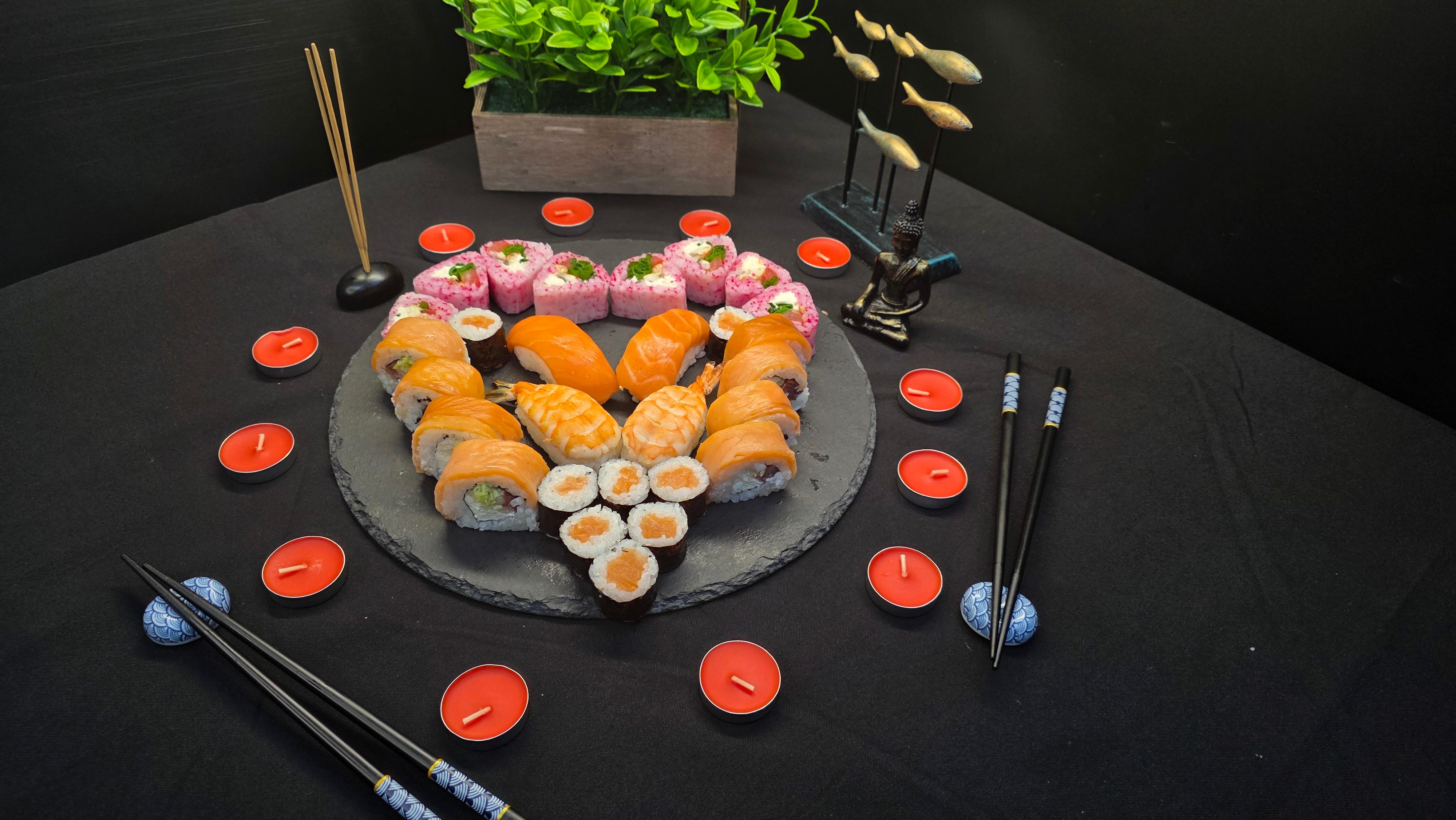 (Тот самый сет, ради которого стоит погасить свет... и зажечь свечи!). Ваш безотказный гастрономический инвестиционный план на вечер. В составе — всё, что нужно для переговоров о капитуляции: страховой полис из четырёх суши, три хладнокровных ролла, умеющих размягчить оборону, и наш главный козырь — романтические свечи , сэт начинённый намёками и ... P.S. Результат не гарантируем, но статистика — на вашей стороне. Приятных переговоров! Форма сердечка — не просто подача, это намёк на ваши намерения. А свечи — чтобы было видно, в чью пользу принято решение. ✅ Сяке макки ✅ Суши Сяке 2 шт. ✅ Суши Эби 2 шт. ✅ РУБИН ✅ ПЕКИНСКАЯ МОНЕТА ✅ свечки 750гр.