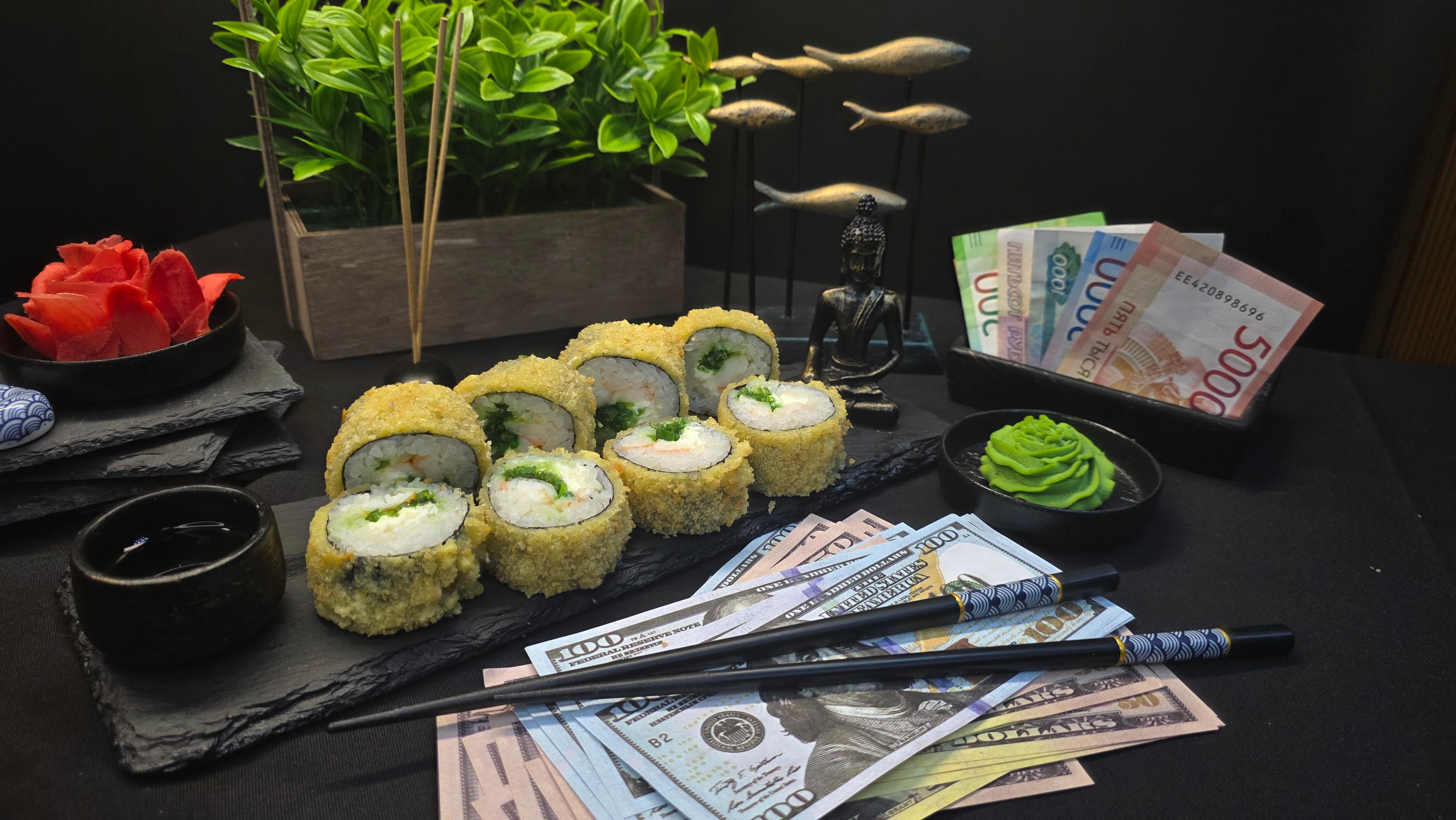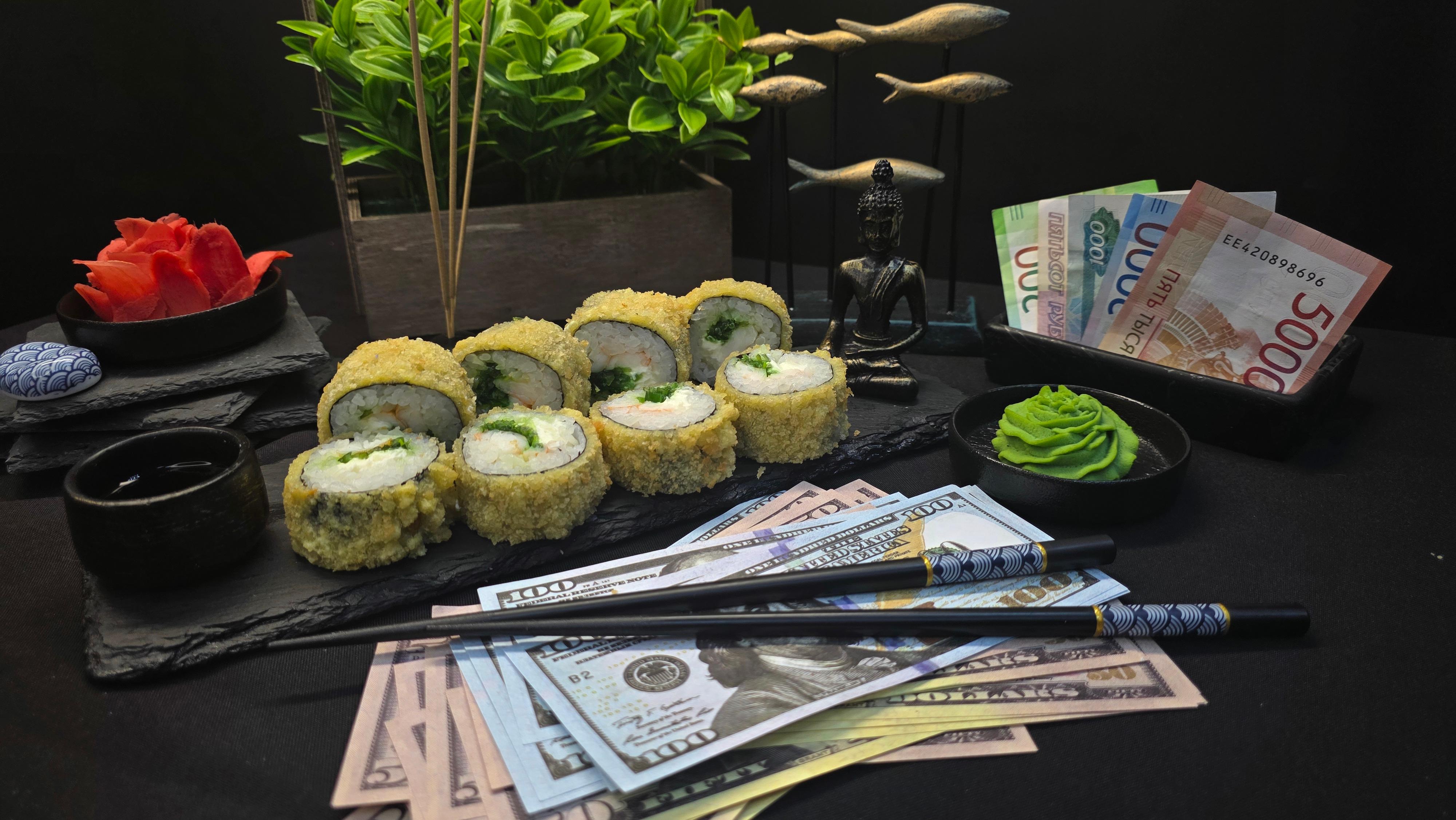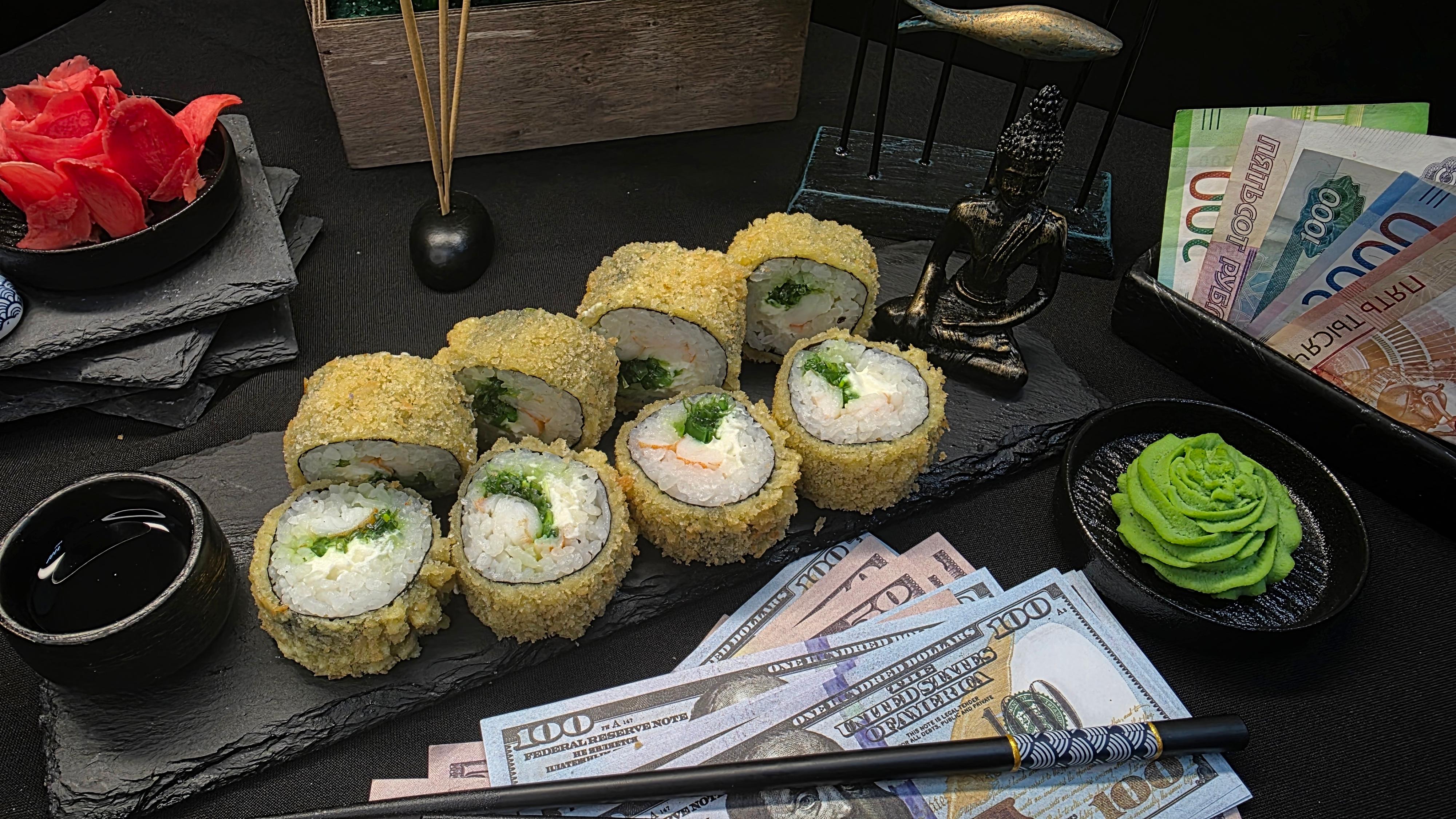 Золотистый хрустящий кляр, укрывающий нежнейшие вареные креветки и освежающий салат чука, встречается с бархатной роскошью сыра «Филадельфия». Нори и рис создают идеальную основу, оттеняя морскую свежесть и сливочную нежность. Каждый укус — это прилив гастрономических эмоций: хруст кляра, сочность креветок, яркость чуки и кремовая текстура сыра. Роскошь, которую можно позволить себе уже сегодня. ✅ Нори (лист водорослей) ✅ Рис для суши ✅ Сливочный сыр (филадельфия) ✅ Креветки вареные ✅ Салат чука ✅ Кляр 260 гр.