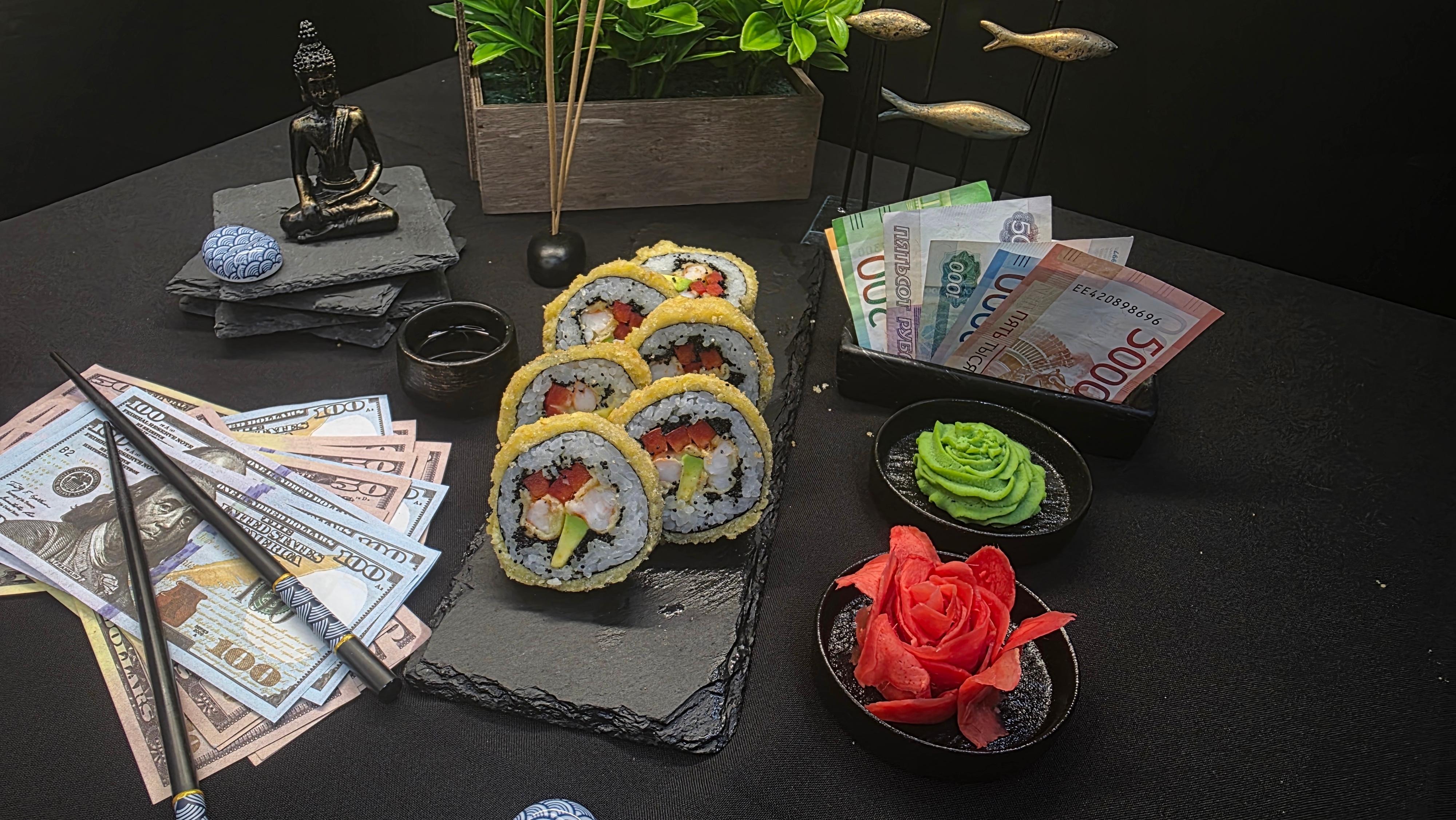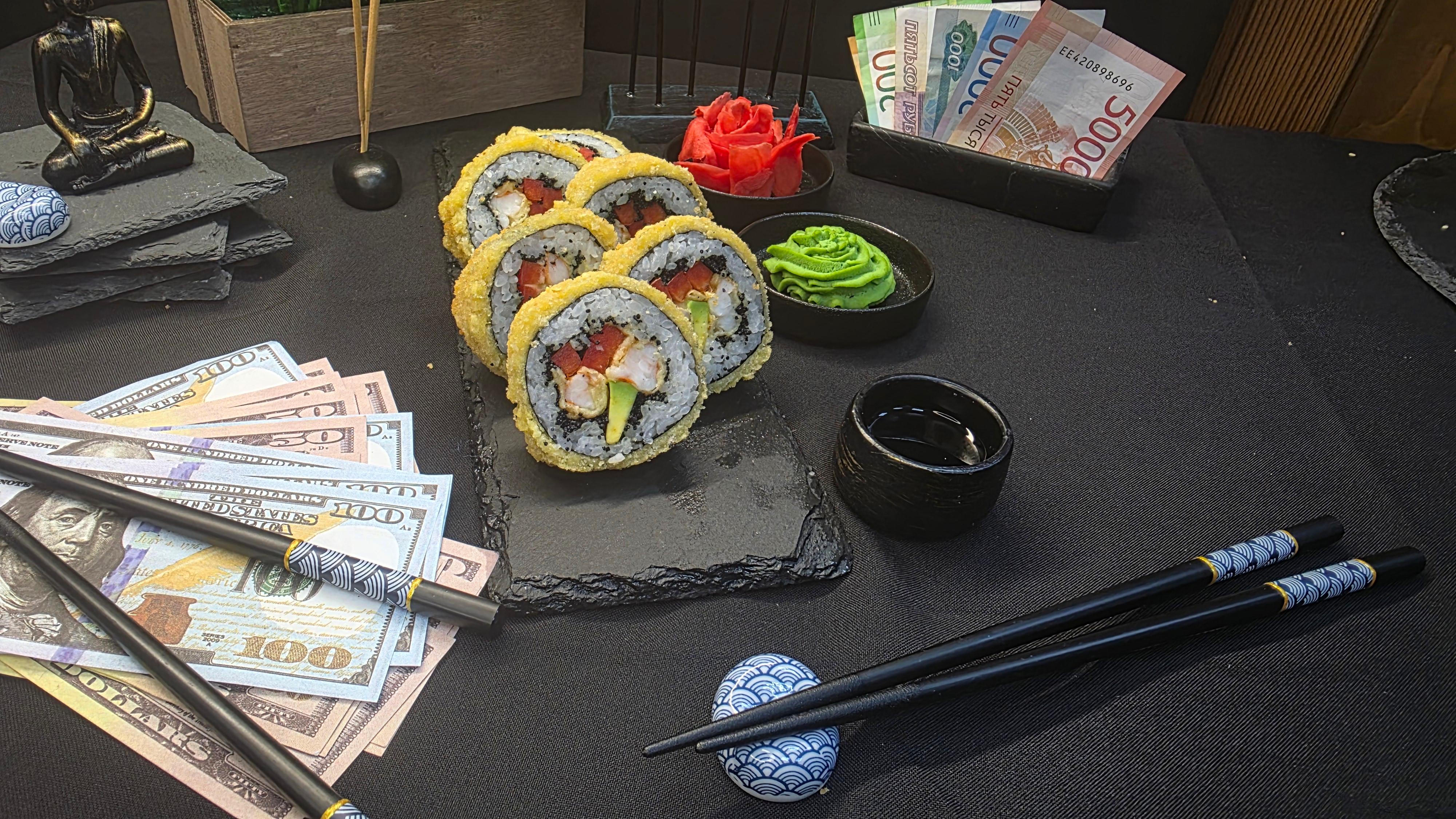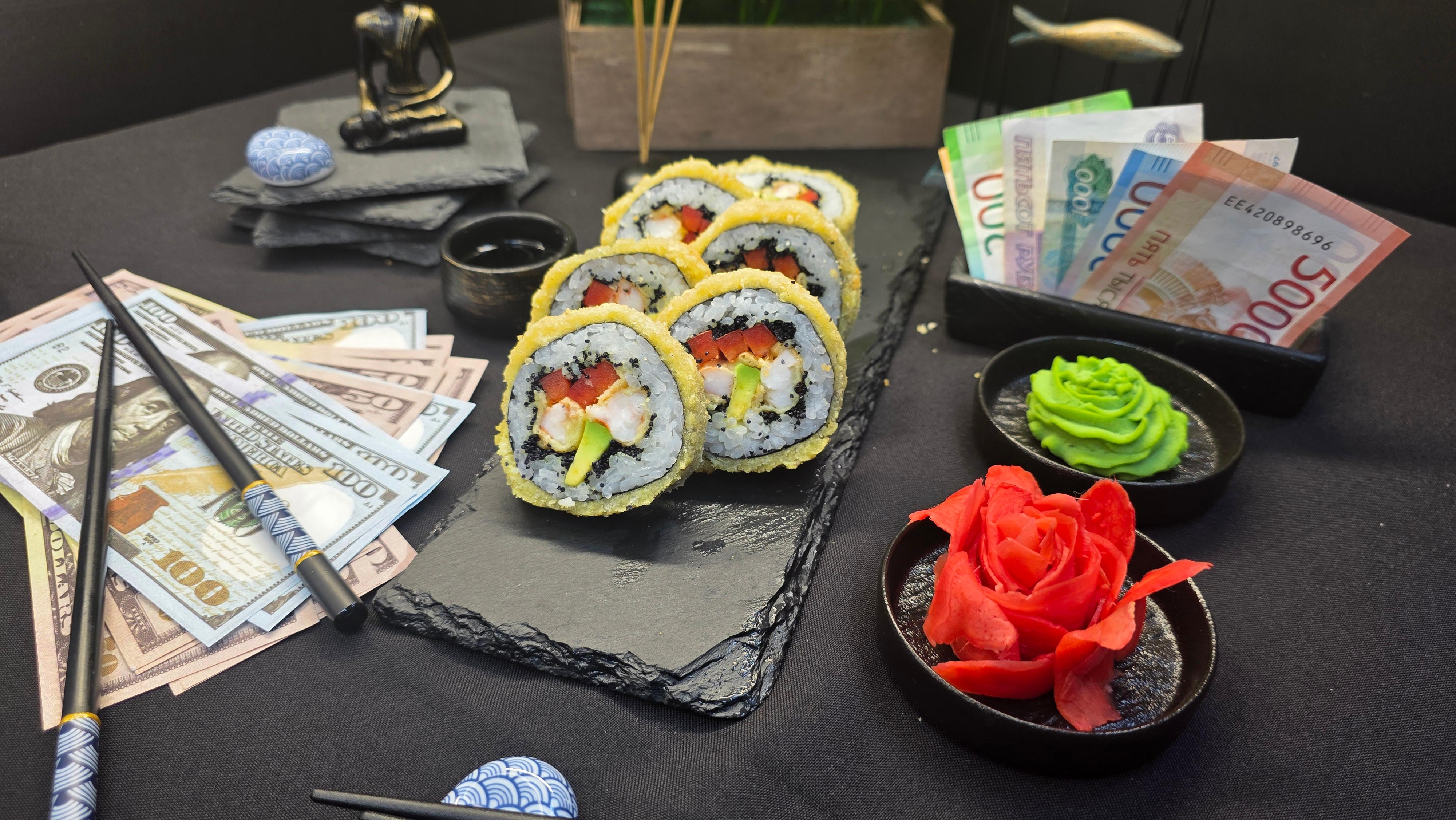 Золотистый хрустящий кляр, скрывающий нежнейшие креветки темпура и сливочные ломтики авокадо, украшенный эксклюзивной черной икрой тобико. Болгарский перец добавляет сочную сладость, а нори и рис создают идеальный фон для этого драгоценного сочетания. Каждый укус — это добыча трофея: хруст кляра, тающие креветки, нежность авокадо, взрывы икры и свежесть перца. Роскошь, достойная истинных ценителей ✅ Нори (лист водорослей) ✅ Рис для суши ✅ Тобико черное ✅ Авокадо ✅ Креветки темпура ✅ Перец болгарский ✅ Кляр 215 гр.