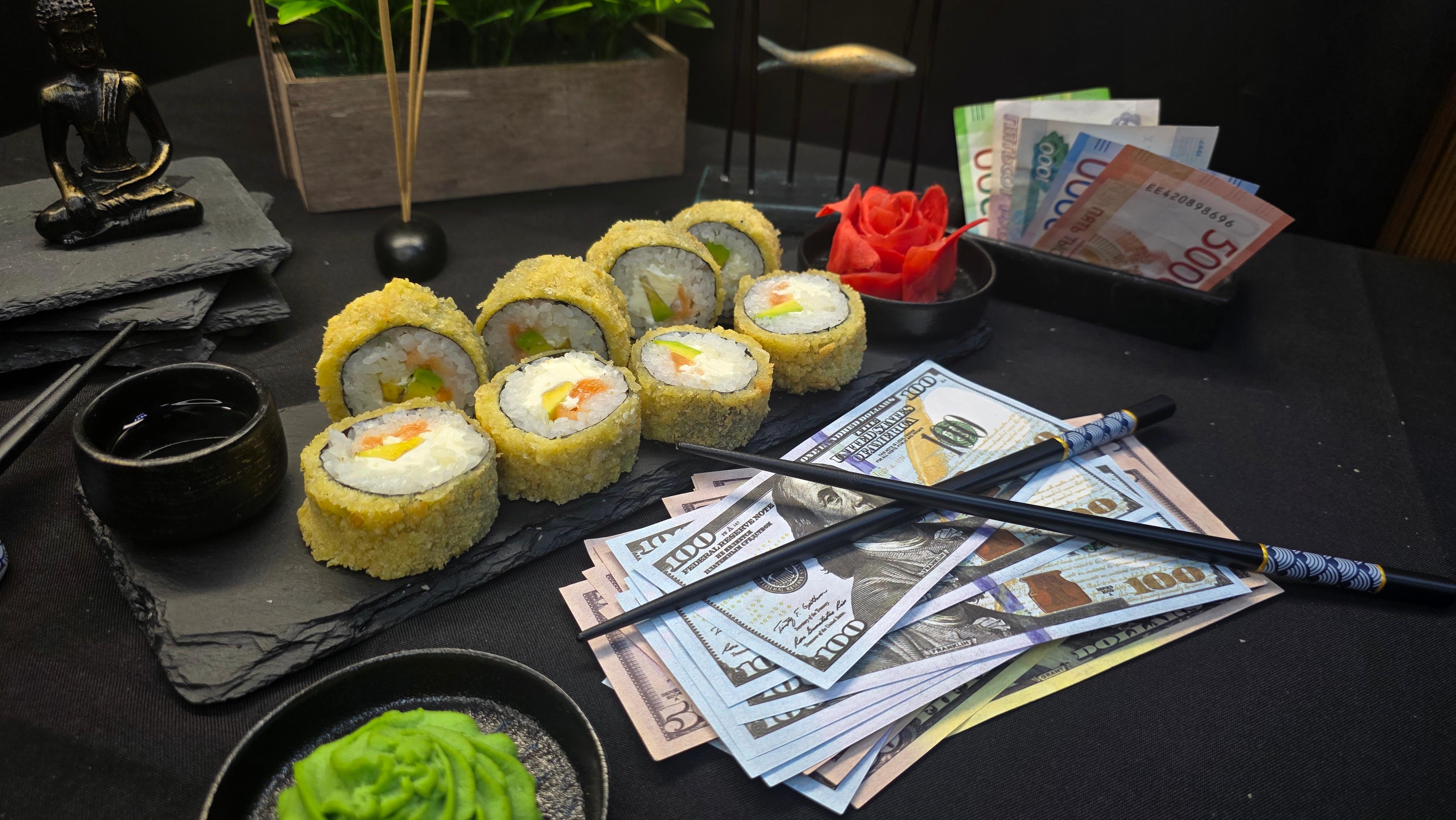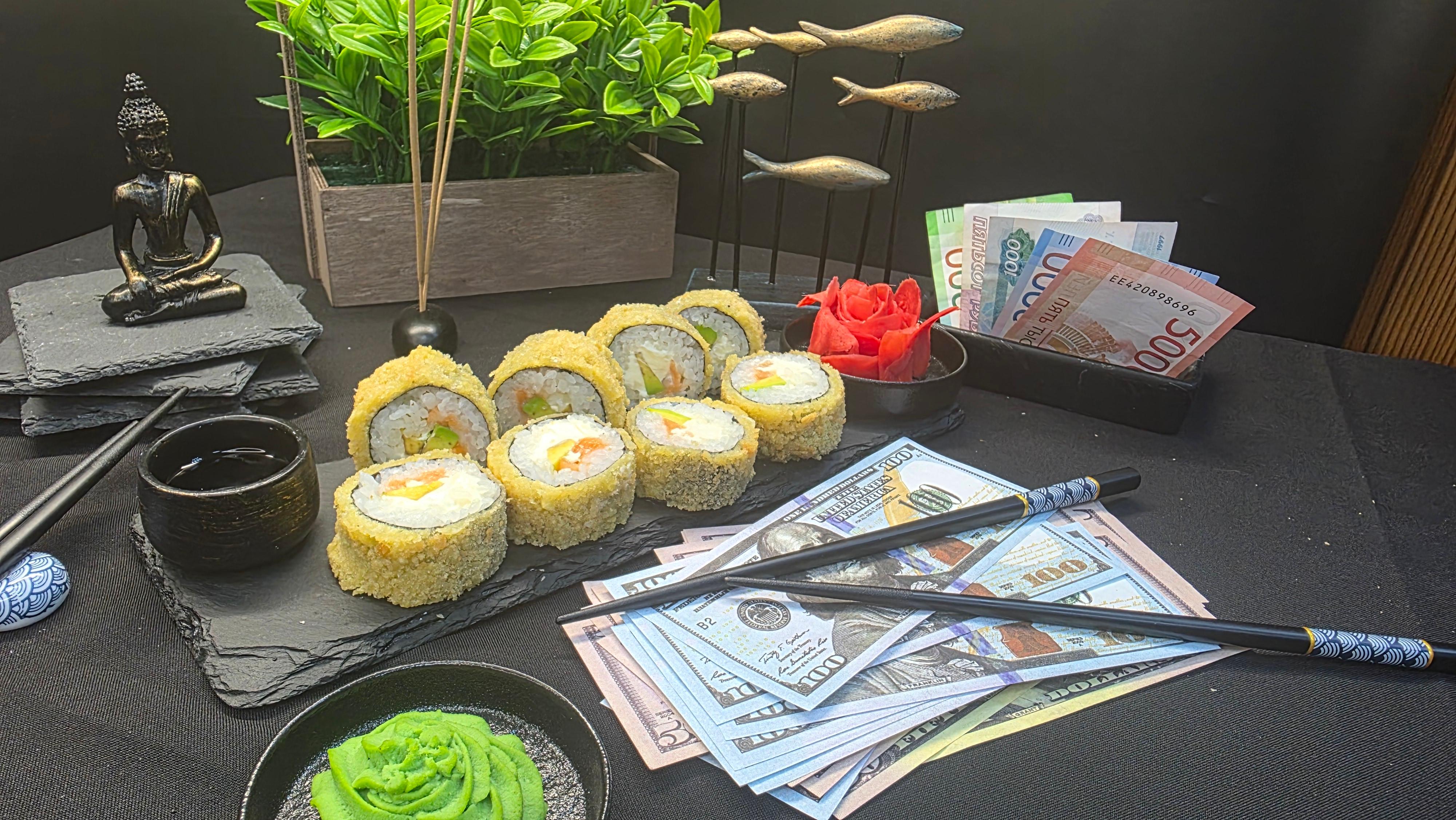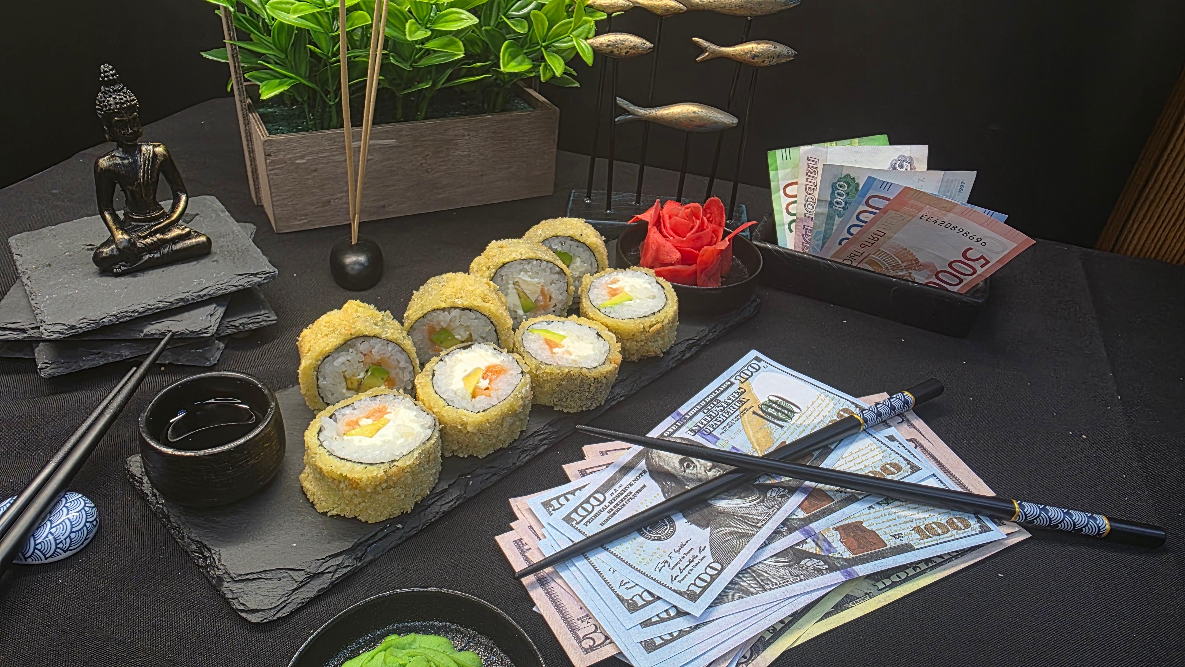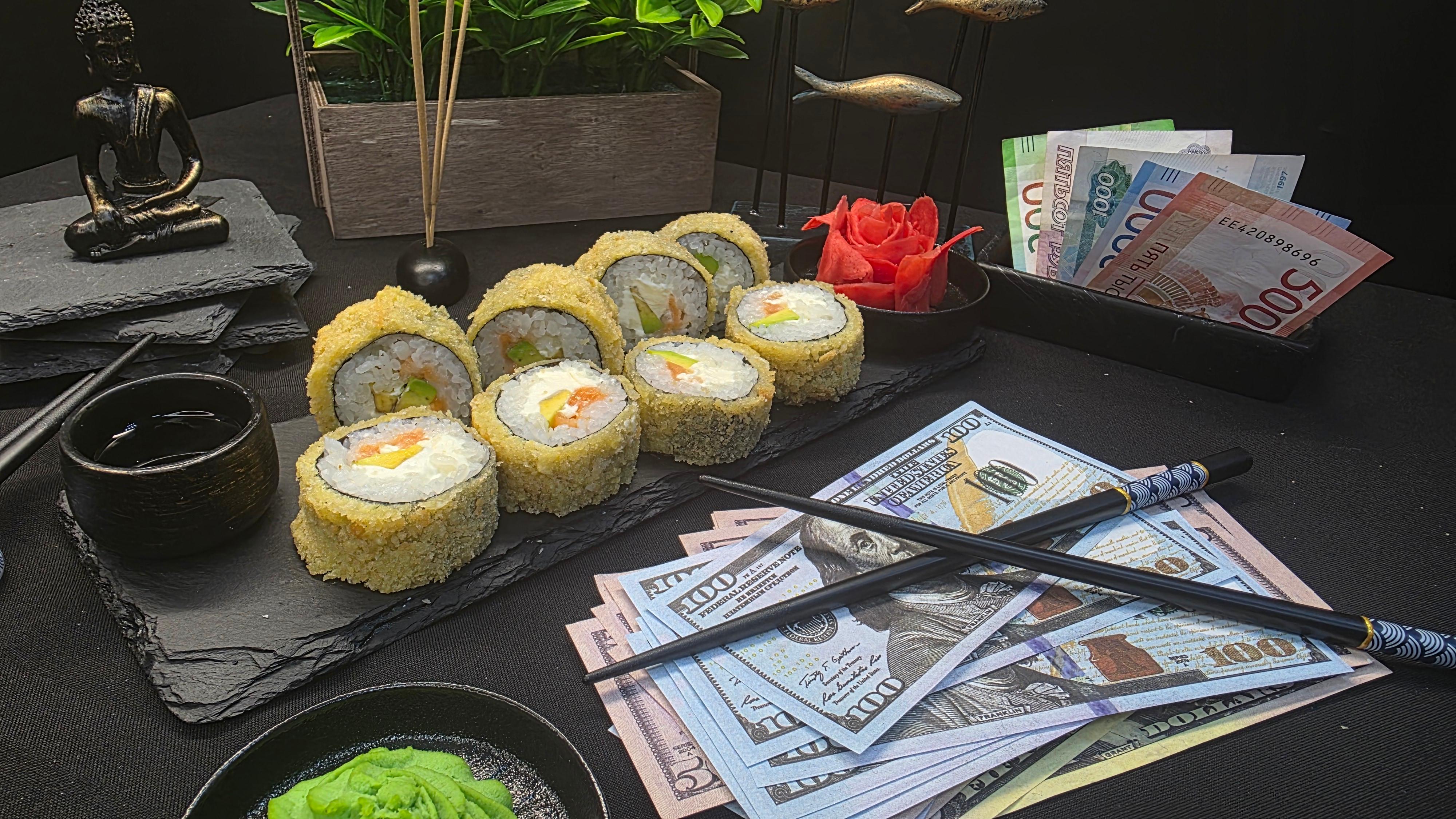Золотистый хрустящий кляр, укрывающий нежнейшее филе лосося и сливочные ломтики авокадо, украшенный россыпью красной икры тобико. Сыр «Филадельфия» создает бархатную основу, а нори и рис подчеркивают богатство вкусов. Каждый укус — это дивиденды роскоши: хруст кляра, тающий лосось, нежность авокадо, взрывы икры и кремовая прохлада сыра. Инвестиция во вкус, которая всегда в тренде. ✅ Нори (лист водорослей) ✅ Рис для суши ✅ Сливочный сыр (филадельфия) ✅ Тобико красное ✅ Авокадо ✅ Лосось ( свежий или слабо соленый ) ✅ Кляр 280 гр.